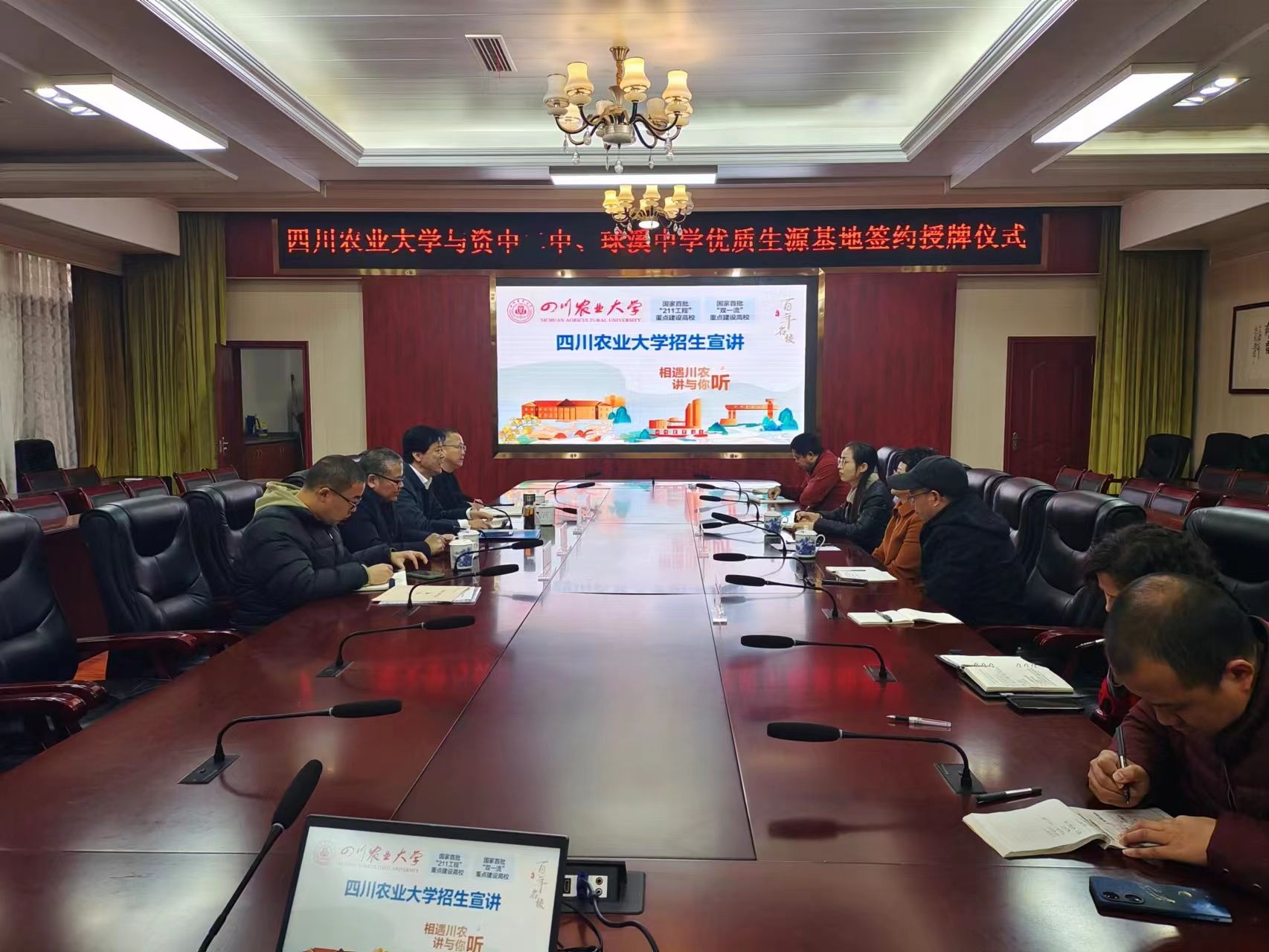 资中二中、球溪中学负责人对太阳成集团tyc151cc在各自公司建立优质生源基地表示感谢,表示将以此为契机,进一步深化教育改革、提高教学质量,让更多资中老百姓子女考上优质大学。县教育体育局负责人对太阳成集团tyc151cc在资中县建立优质生源基地表示热烈欢迎和诚挚感谢,恳请太阳成集团tyc151cc利用自身平台优势,为资中学子上优质大学,提供更多的帮助和支持,祝愿校县合作成果丰硕。