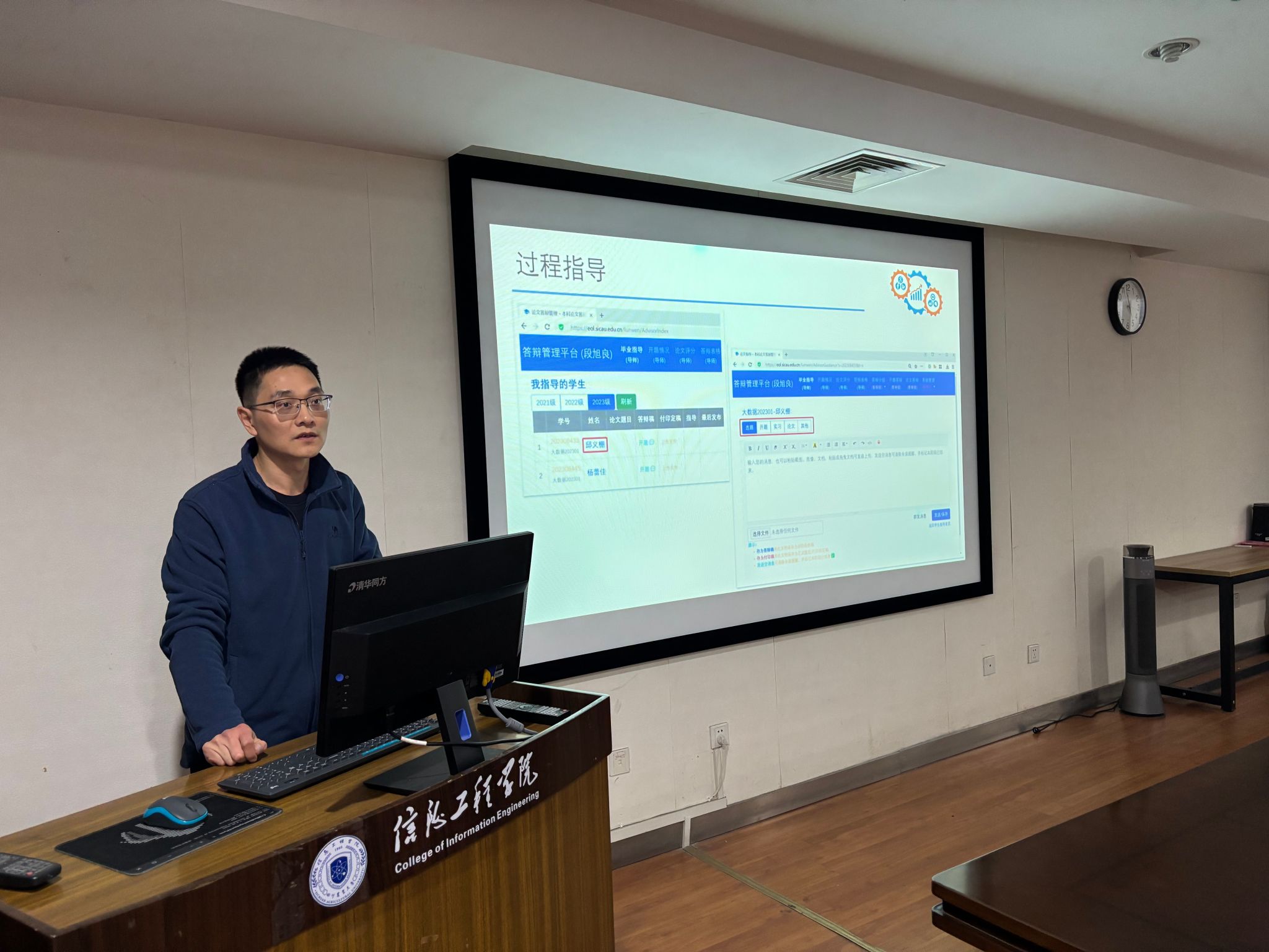 针对近期开展的2027届本科毕业论文导师双选工作,会议开展了“毕业论文管理系统”培训和毕业论文指导经验分享。副经理段旭良围绕答辩管理、过程指导与AI辅助等模块对系统功能和建议流程进行了详细讲解和说明。毕业论文指导经验由蒲海波教授分享,他从员工未来规划指导与毕业选题两个维度出发,强调要引导员工将毕业设计与职业发展相结合,同时分享了在指导过程中的常见问题及解决经验。
