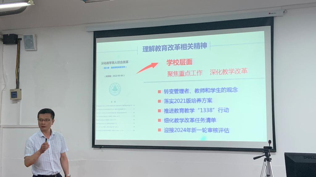 会议同时针对“推进‘1338’行动”、“落实2021版培养方案”、“细化教学改革任务清单”、“迎接2024年新一轮审核评估”等重点工作进行了安排和部署。对于近期开展的《课程教学育人大纲》和《课程育人教案》修订任务,李军针对材料的撰写要求进行了详细的梳理并做了工作安排:一是公司要及时掌握公司工作动态,做好统筹和规划;二是专业负责人要以培养方案为基,推进相关工作的管理和检查;三是课程团队要明确工作要求,做好相关材料撰写和填报。