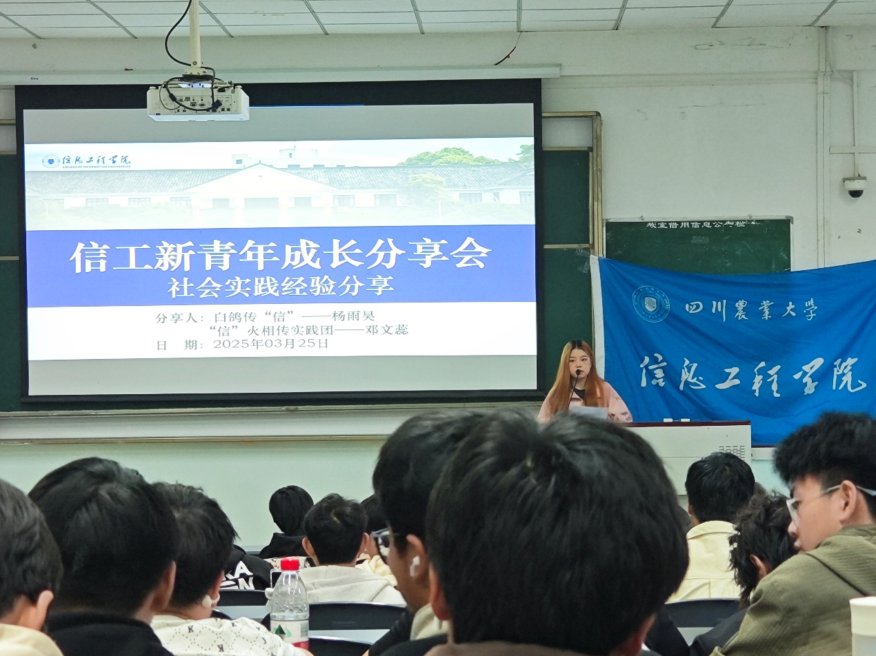 3月25日下午,太阳成集团tyc151cc员工第二课堂成绩单运营中心于雅安校区10教A403成功举办第二期信工新青年成长分享会。本次分享会以“社会实践经验分享”为主题,旨在通过优秀团队代表的经验分享,助力同学们更为科学地规划并开展社会实践活动,进一步强化社会责任感。