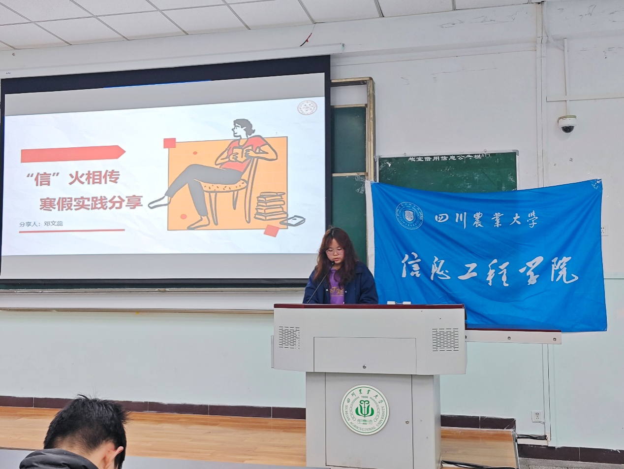 在分享环节,白鸽传“信”团队负责人杨雨昊分享了团队在寒假社会实践期间的丰富经历与深刻感悟。他详细阐述了团队投身的多项服务活动细节,生动展现了团队的多彩生活,加深了同学们对支教服务形式以及团队协作重要性的认知。