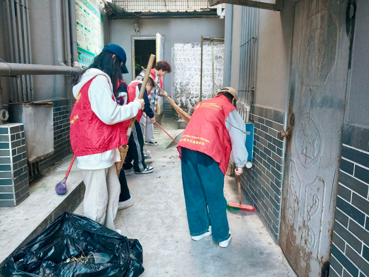 在社区的一些公共区域,部分志愿者拿起扫帚、抹布,清扫路面垃圾,擦拭公共设施,社区环境焕然一新。