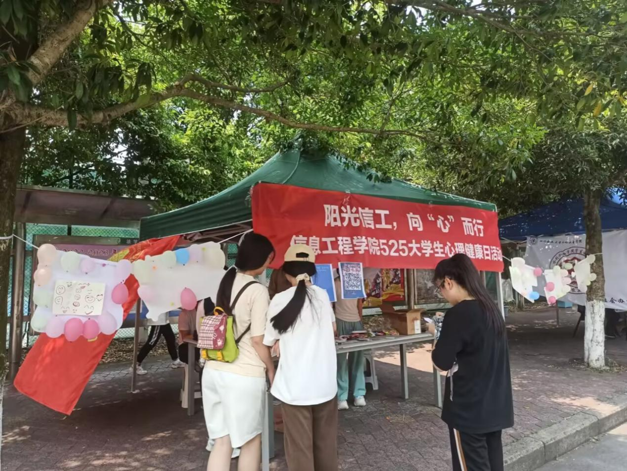 而戳爆代表烦恼气球的环节更是将活动氛围推向高潮。随着“砰” 的一声,象征烦恼的气球被戳破,藏在其中的零食小奖品展露出来,同学们不仅收获了惊喜,更在瞬间感受到烦恼消散的畅快。此外,大家还在设点处的小黑板上留下自己最喜欢的心灵鸡汤,一句句励志话语汇聚成精神力量,激励着每一位路过的同学。