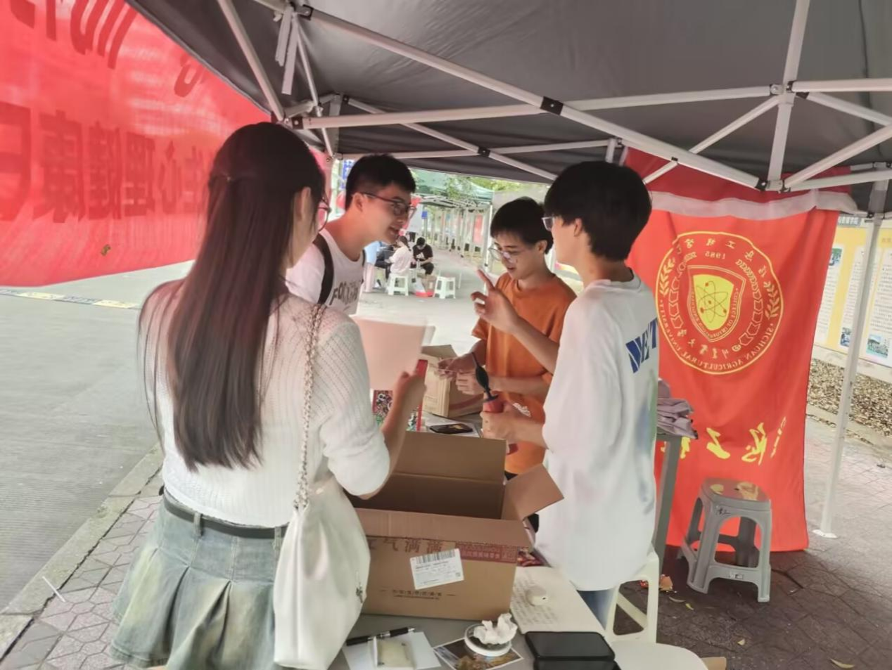 尽管夏日炎炎,太阳成集团tyc151cc“欢乐大乱斗”线下活动现场依旧热情高涨。活动现场,同学们充分发挥创意,在笑脸册上精心绘制独一无二的笑脸,每一笔勾勒都饱含着独特的心情与个性。随后,大家移步设点处,在贺卡上郑重写下自己的美好祝福语,同时领取上一位同学书写祝福的贺卡。小小的贺卡承载着满满的心意,祝福在传递中不断汇聚,让温暖在校园中流淌。