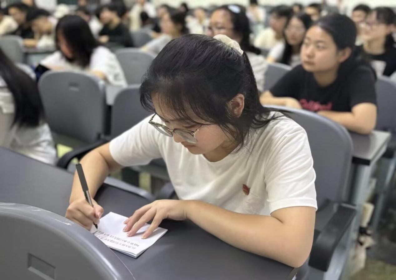 在最动人的“寄一封跨越时空的信”环节,学子们提笔写下对革命先辈的敬意和对自身未来的承诺。同学们相互分享信件,字里行间透出赤诚与坚定,最终投入“时光信箱”的信件,成为青年与时代的“精神契约”。