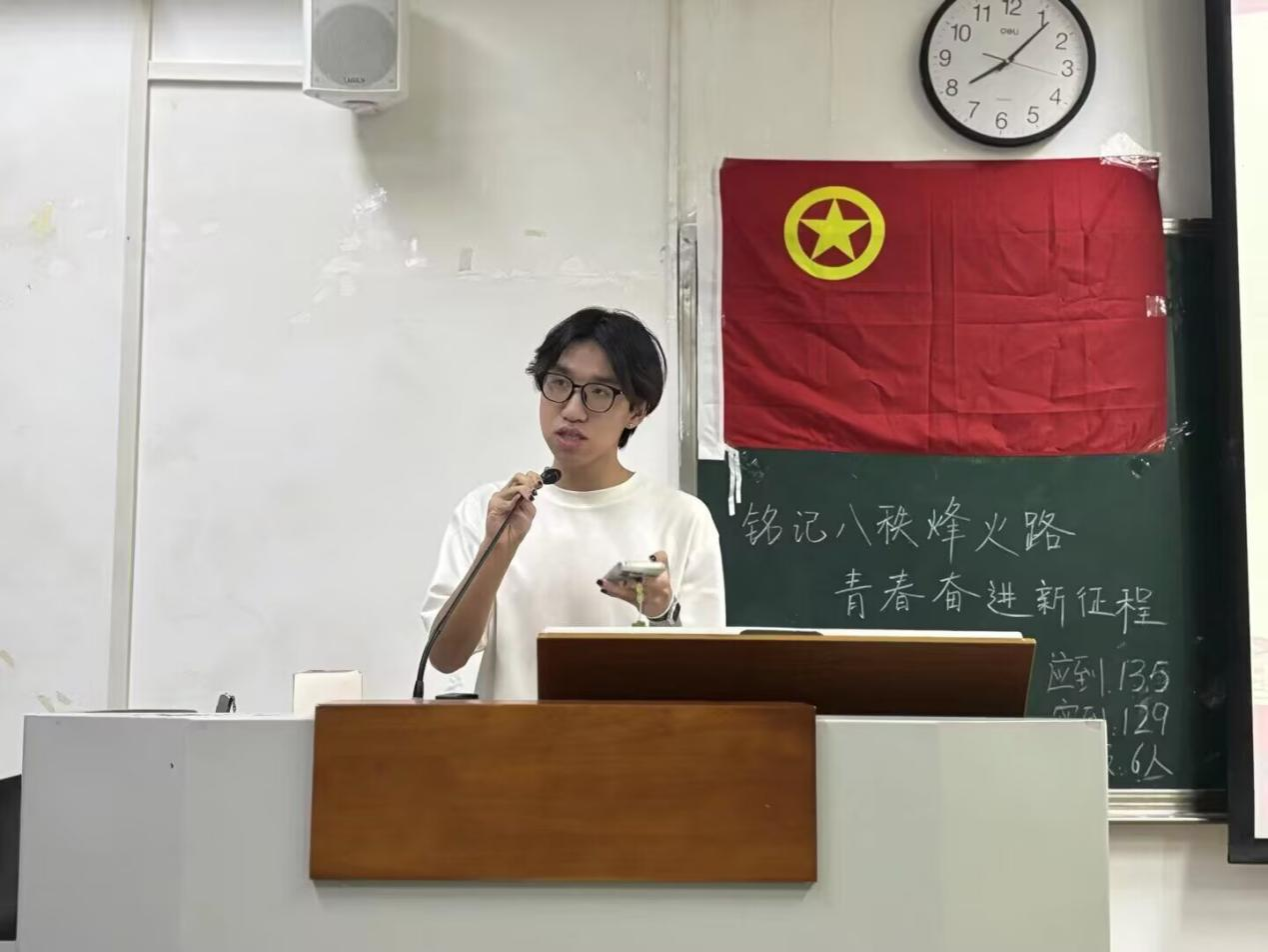 活动在嘹亮的团歌合唱中启航,旋律里承载着青年对信仰的坚守。主持人任师绮、王译涵以“80年山河无恙,80年初心如磐”破题,既点明抗战胜利对民族独立、国家发展的里程碑意义,更聚焦“新时代青年如何接过历史接力棒”的核心命题,为活动奠定“以史鉴今、知行合一”的厚重基调。