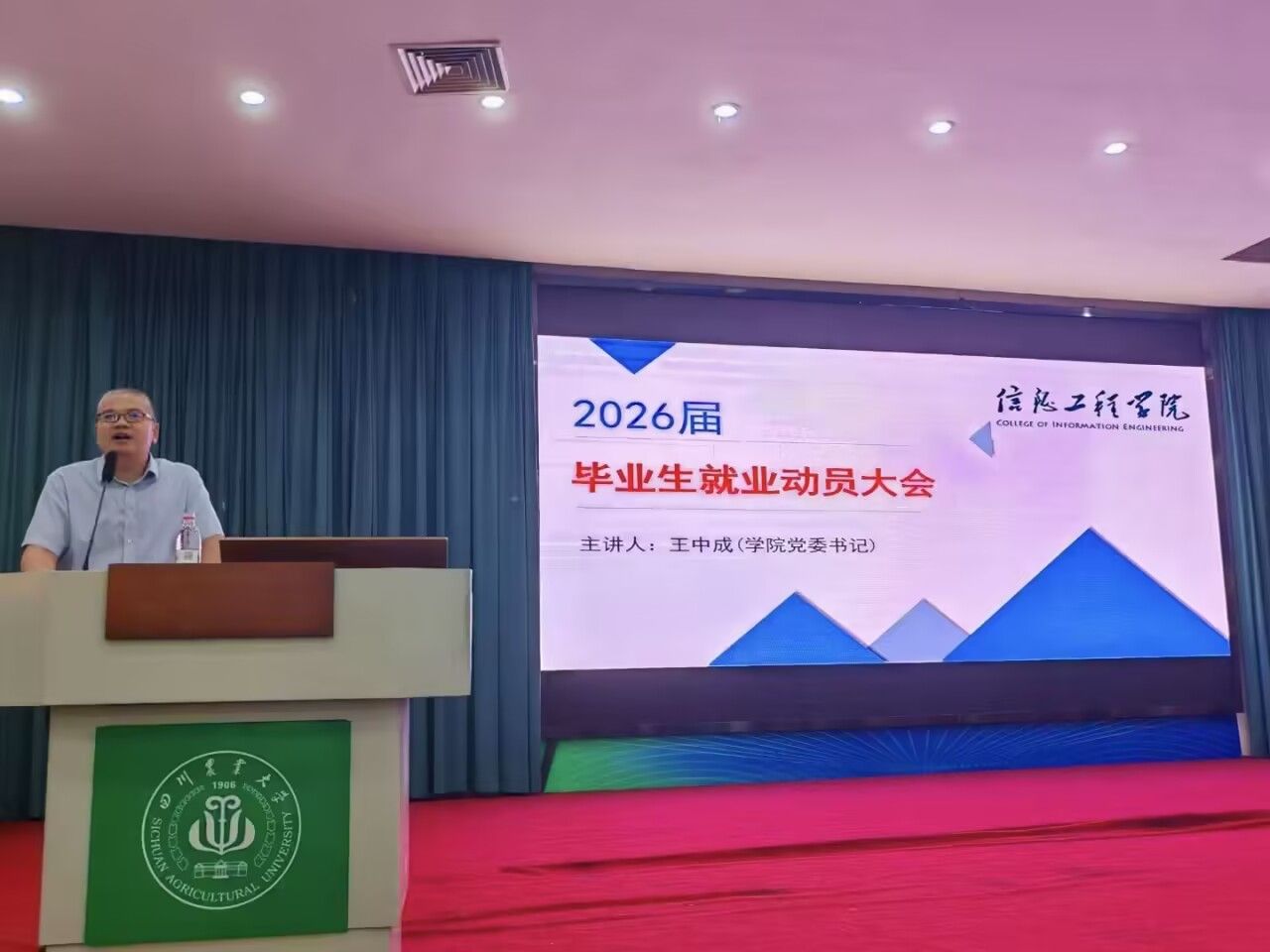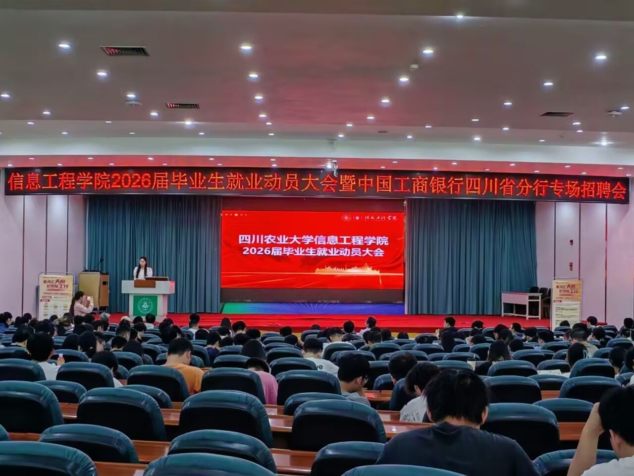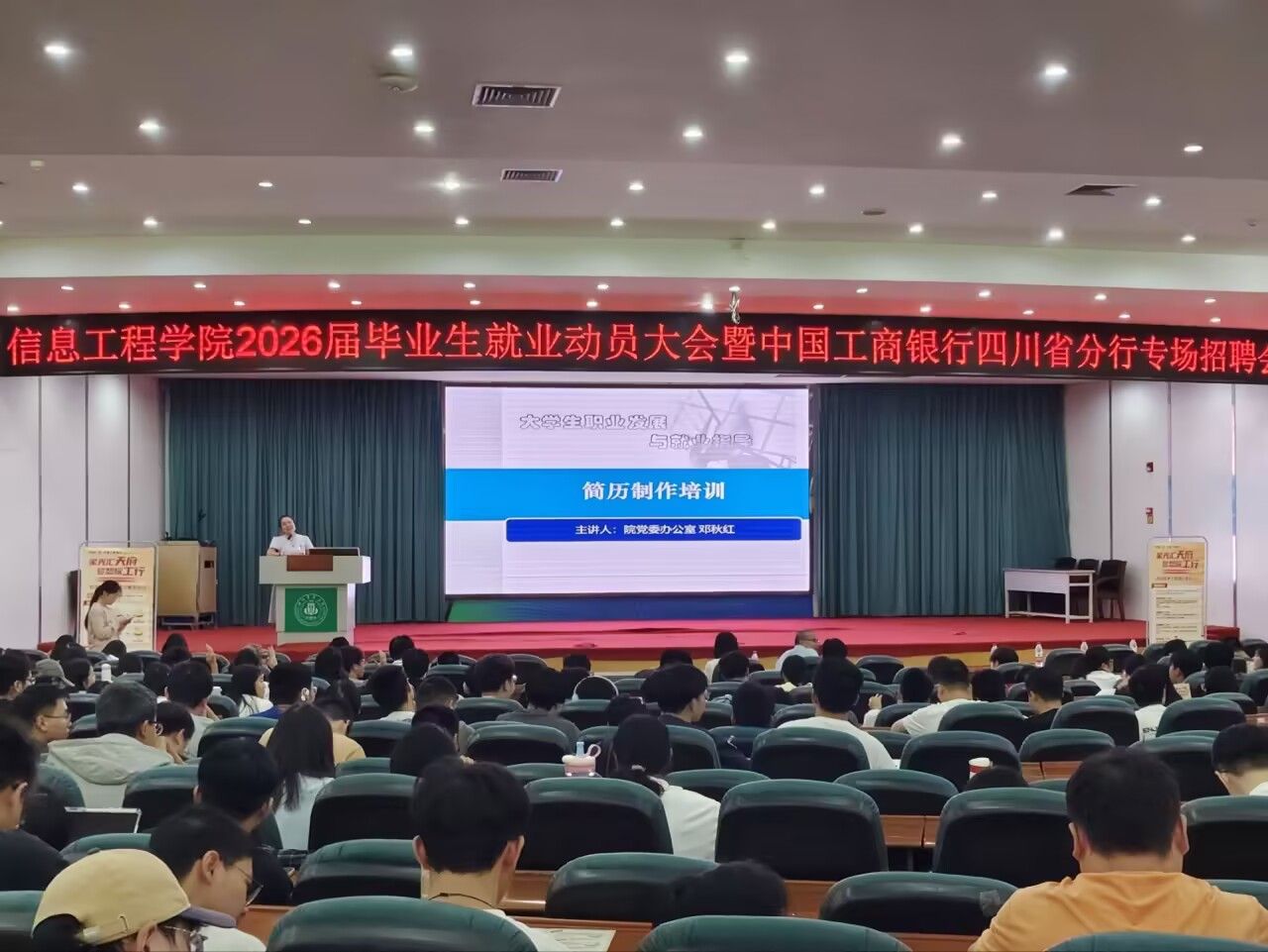 9月23日下午,“太阳成集团tyc151cc2026届毕业生就业动员大会暨中国工商银行四川省分行专场招聘会”在新区十教小礼堂举行,公司党委办公室王中成书记、全体辅导员、中国工商银行四川省雅安分行、攀枝花分行宣讲人员以及2026届全体员工参与。