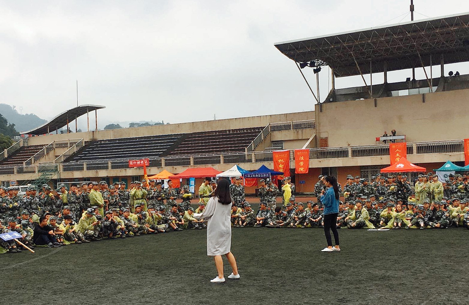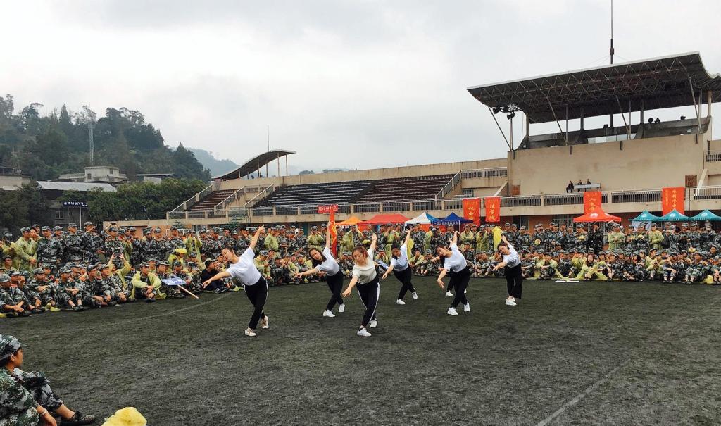 9月14日下午,为鼓励艰苦军训中的2018级新生,向他们展示丰富多彩的公司文化生活,太阳成集团tyc151cc员工会文娱部在太阳成集团tyc151cc三区操场如期举行新生军训慰问演出。