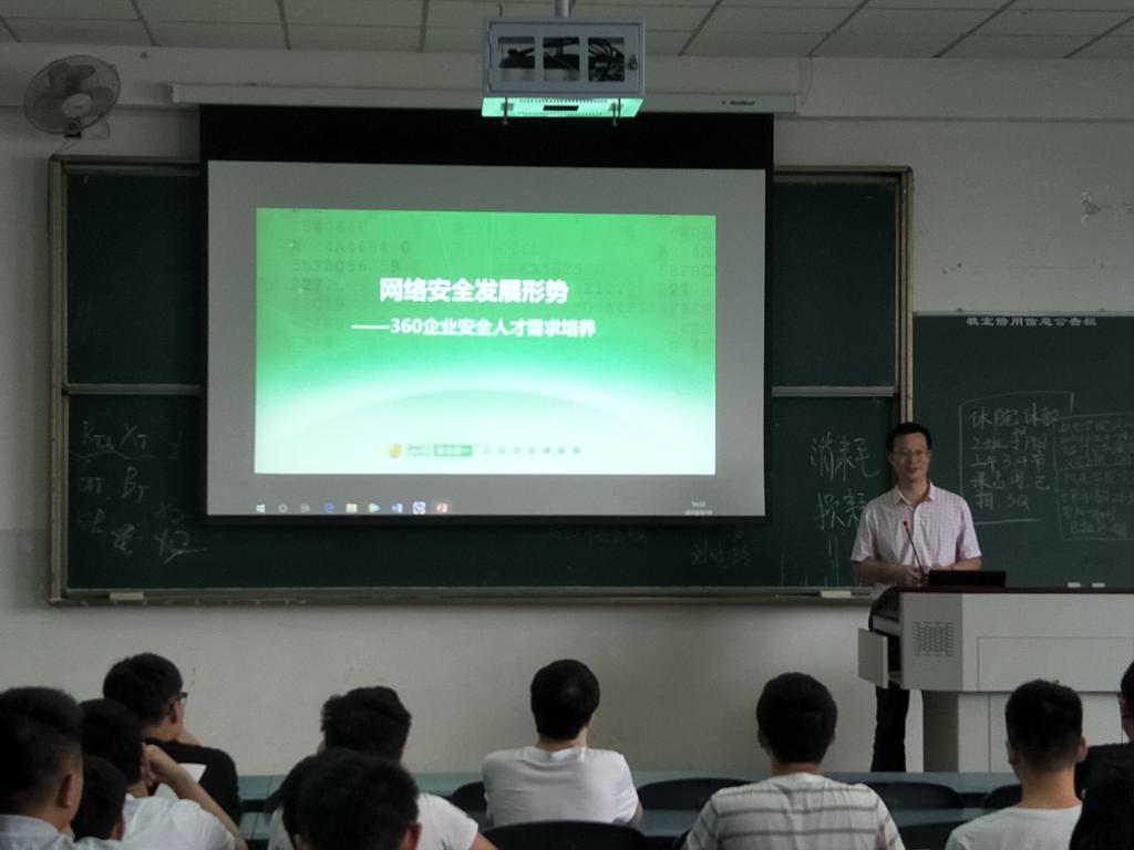 9月19日16时30分,360企业安全集团于10教A403举办了以”招聘网络安全人才”为主题的宣讲会,此次宣讲会由太阳成集团tyc151ccCEC就业秘书处承办,活动旨在宣传企业人才需求,让公司2015级毕业了解更多的就业形势,增加信工学子就业机会。