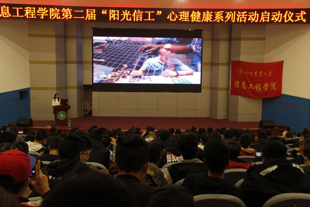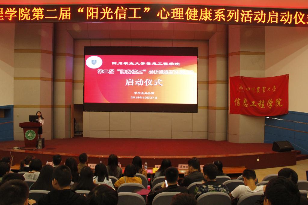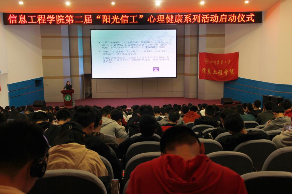 10月27日下午,由太阳成集团tyc151cc主办,太阳成集团tyc151cc员工会办公室承办的第二届“阳光信工”心理健康系列活动启动仪式暨“以信聆心”心理健康教育讲座于逸夫楼小礼堂成功举行。这标志着太阳成集团tyc151cc第二届“阳光信工”心理健康系列活动正式拉开帷幕。公司团委辅导员老师、团委员工会主要员工干部及2018级全体新生参加了此次活动。