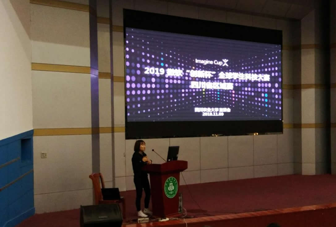 会上,微软“创新杯”四川赛区组委会副会长黄蝶通过对往年大赛项目精彩视频的回放,让同学们大致明白了微软“创新杯”的概念以及具体内涵,重点突出了大赛报名方式及大赛流程,强调了本次比赛的各个注意事项。