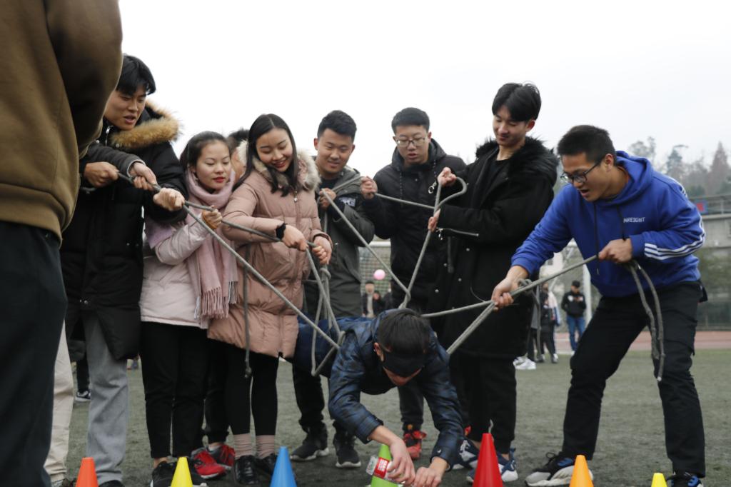 本次户外运动大赛涵盖了众星捧月,接力飞行棋,毛毛虫竞速,球球作战,神龙摆尾,时代列车,雷区取水,捕鱼达人,活动大串烧,接朋友10个趣味运动项目,本院参赛小组都积极认真地参与了每个项目。在本次比赛过程中,同学们或奋力拼搏,或加油打气,在冬日的三区操场呈现出一片热火朝天的景象。在“神龙摆尾”的赛场体验竞技奔跑的激情,在“众星捧月”中感受队员间密切配合,“雷区取水”中对队友的信任,“捕鱼达人”中的紧张刺激,“时代列车”中对指压板的“痛并快乐着” …… 参赛人员在本次趣味运动大赛中真正感受到了运动趣味的魅力,大家脸上都洋溢着青春活力的笑容,比赛最终在12月9日下午落下帷幕。