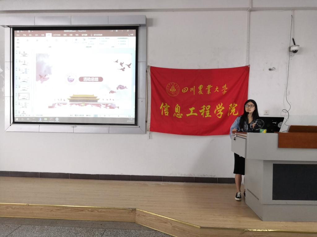 最后,刘雨欣为本次 “精品团日活动”大赛做简单总结,她肯定了参赛团支部开展活动的成效和努力,对创新团日活动形式与内容提出了倡导,并号召大家将此次活动学到的精神继续发扬,将精品团日活动传承下去。