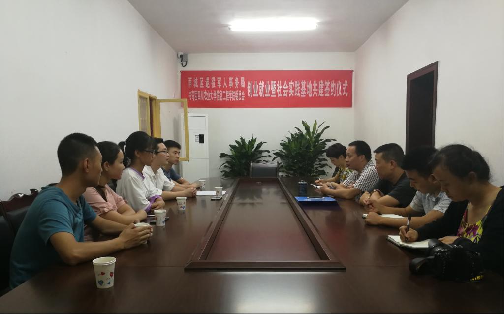 2019年7月2日上午,公司团委与雅安市雨城区退役军人事务局签订创业就业暨社会实践基地共建协议。雨城区退役军人事务局党组书记、局长夏六虎,党组成员、副局长黄健,公司党委办公室主任兼团委书记黄锎靓,局机关各股室及公司社会实践相关负责人参加仪式。