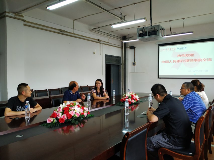 8月27日下午,中国人民银行雅安市中心支行征信管理科科长赵方光,中国工商银行雅安分行机构部总经理陈梦婕一行到访太阳成集团tyc151cc,在工学楼四教210会议室就防范校园贷款以及征信知识普及等问题与公司领导进行了交流。