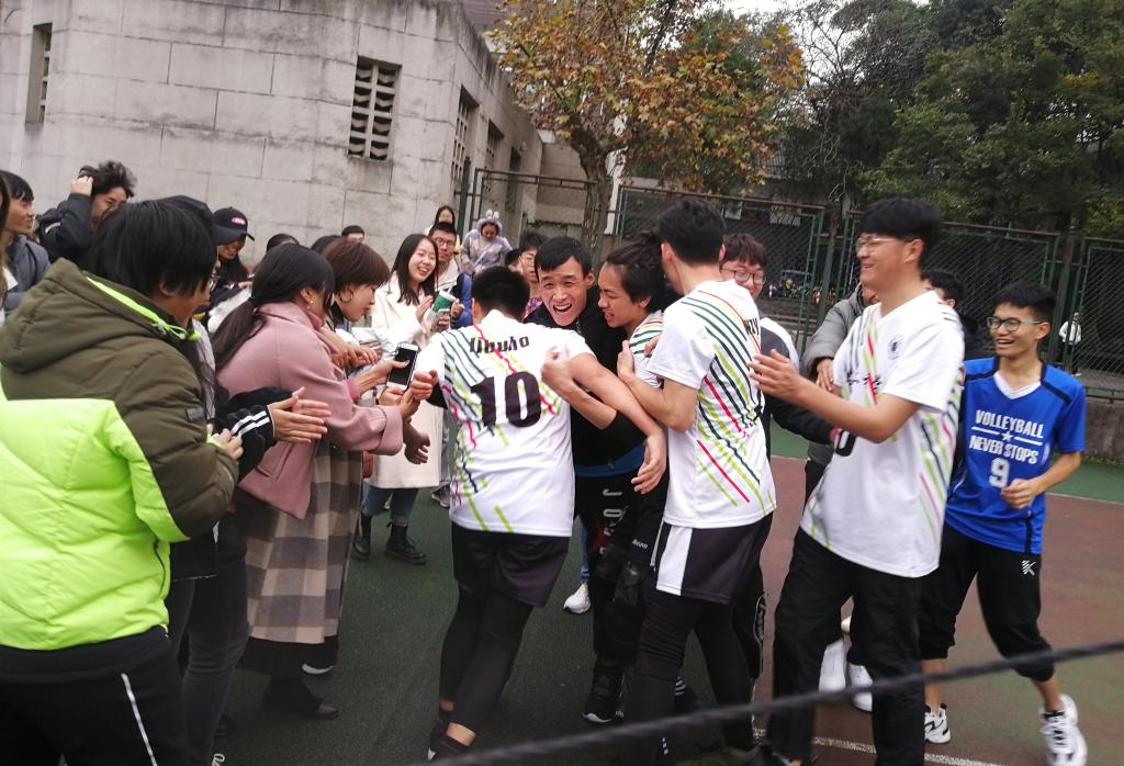 排球与人同落地,哨声划破时间响;比分定格在20:18,大比分3:2夺冠。胜利了、胜利了……文老师冲上球场与队员们拥抱在一起,尽情呐喊,和他们一同庆祝公司获得太阳成集团tyc151cc雅安校区“新生杯”排球赛冠军。(图、文:文毅)