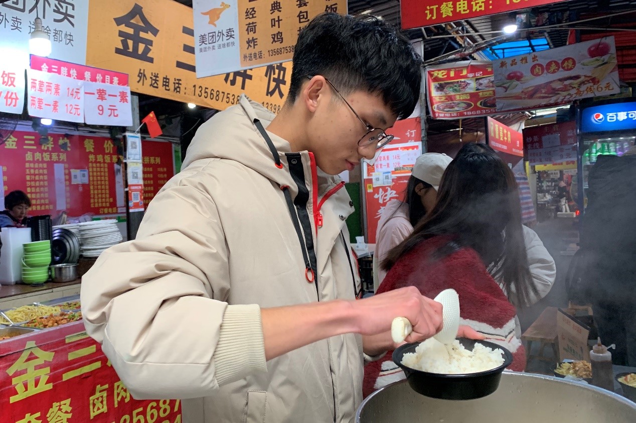 早上8点,同学来到操场,开始了信心满满的一天。70名挑战者被随机分配到14支队伍。在介绍完挑战宣言后,首先开始破冰游戏,为接下来的生存挑战奠定团队协作的基础。在“心有灵犀”、“手足情深”两轮游戏环节中,队员们默契合作、群策群力,活动现场气氛紧张热烈。游戏结束后,“零元生存”实践活动正式拉开帷幕。挑战者忙碌的身影分散在城市的大街小巷:帮饭店送外卖,给餐厅打零工,在奶茶店做兼职,为健身房发传单……每个团队成员都在努力勤恳地工作。送外卖路上刺骨的冷风、街头说破喉咙也没有人购买的无奈……是中途放弃还是咬牙坚持?挑战者们经受着身体和内心的双重考验。