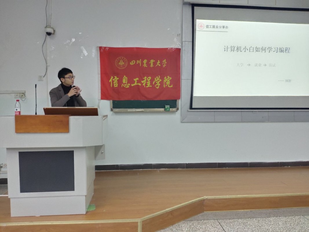 就职于网易的田智和就职于vivo的陈志博分别结合自己的亲身经历向大家分享就业经验,他们介绍了投递简历的渠道和参加招聘的时间、流程,并强调到:无论是在技术的硬实力方面,还是思维想法的软实力方面都一定要做好相关准备。陈志博以自己成功被聘为vivo产品经理的经验,向大家介绍了产品经理这个岗位的相关信息,并给大家分享了自己收集的产求职应聘的相关资料。田智结合自己大二时努力实践的亲身经历为大家介绍了“计算机小白如何学习编程”,他表示“你的努力有多大,你的收获就有多大。”