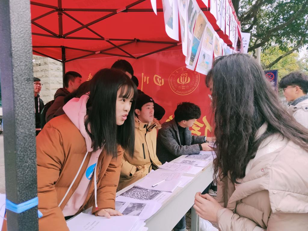 为了加深同学们对社会实践活动的认知与了解,宣传点陈列了往期的精选照片、优秀外宣新闻稿、策划方案、实践总结等优秀实践材料,旨在让同学们更直观地了解社会实践,有所借鉴和学习。宣传过程中,部门成员耐心地为同学答疑解惑,介绍实践的多种形式和方法,鼓励大家积极创新,开展健康向上、形式多样的实践活动。