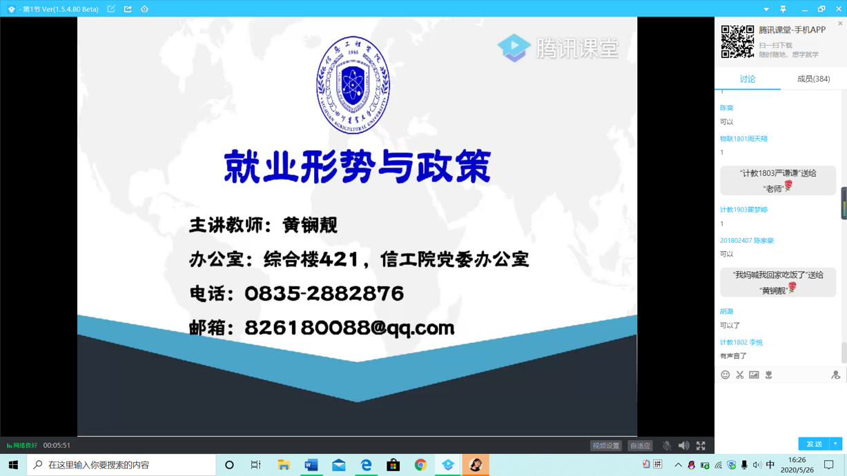 在最后的答疑环节,同学们积极提问,黄老师对同学们的问题进行了一一解答,并表达了对同学们的期许,鼓励同学们树立正确的就业观念,并且积极参与各类实践,提升自身能力,为以后的就业打下坚实的基础。【文、图/蒋荣霞 审/尹华祺】