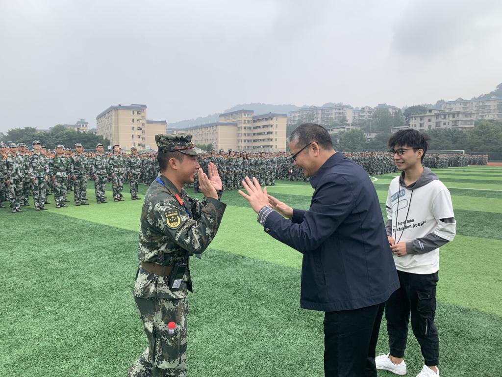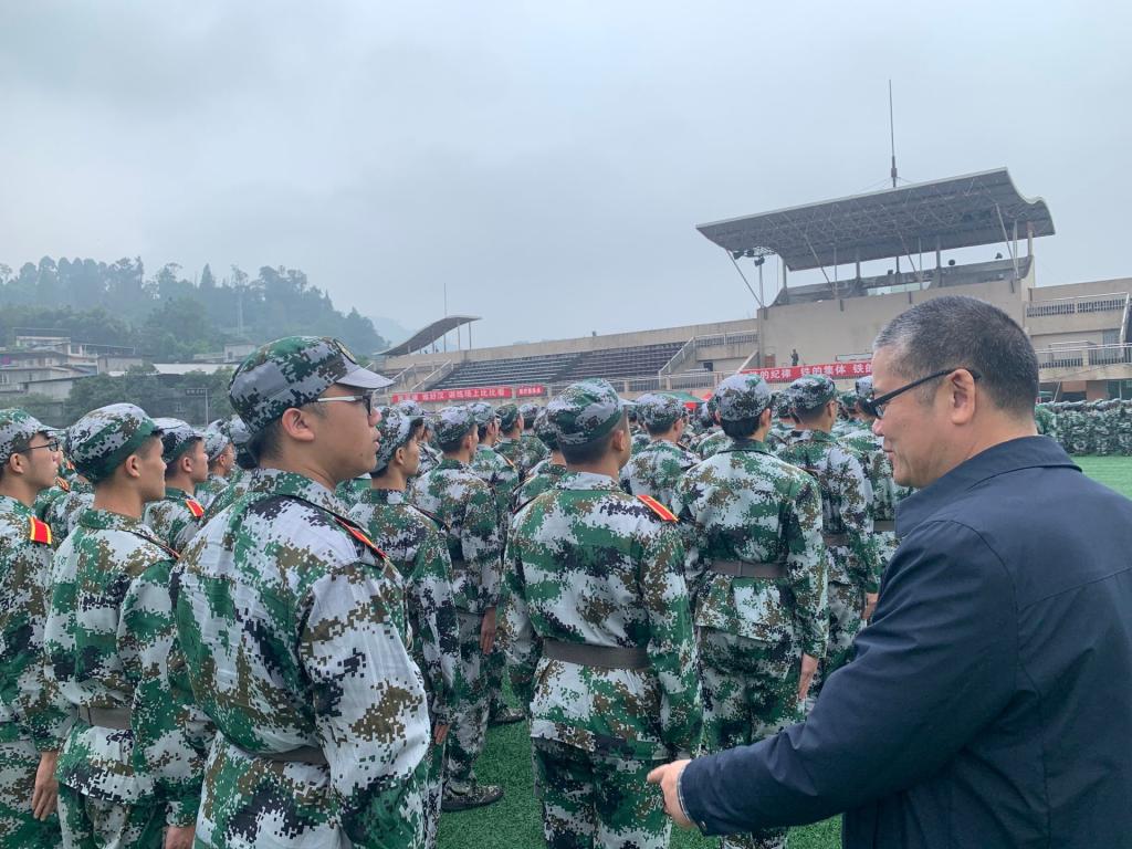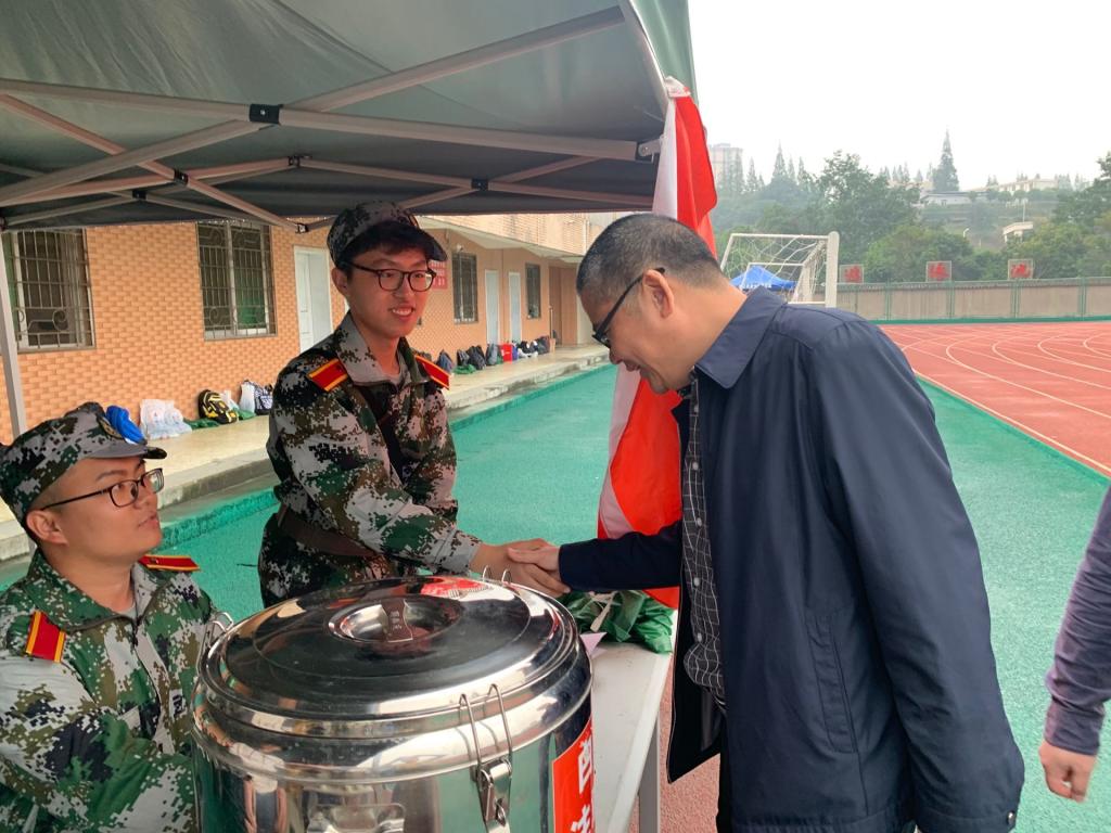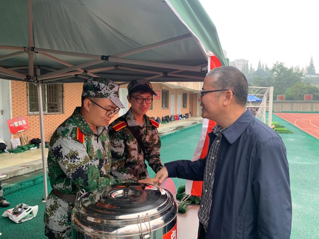 2020年9月21日上午,新生军训第一天,公司党委书记王中成、公司党委办公室辅导员到新区操场看望2020级新同学,并鼓励2020级新生认真参加军训,服从指挥,认真学习部队的好传统、好作风,做有思想、有道德、有文化、有纪律的“四有”新人。【文、图/尹华祺 审:王中成】