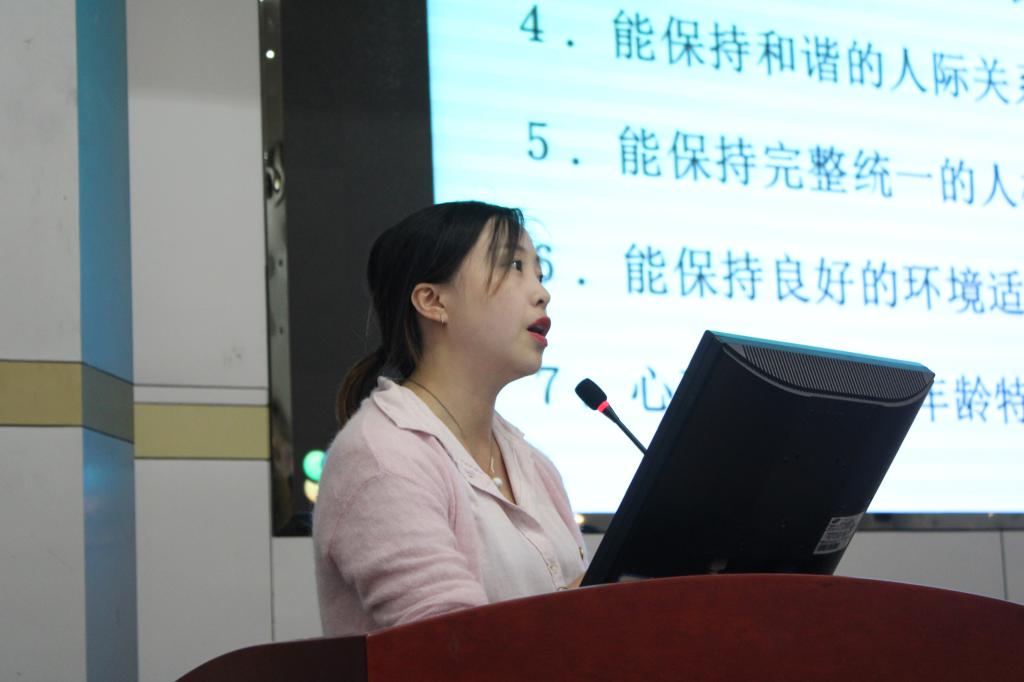 尹华祺以“良好的适应与发展”为主题,围绕老员工心理健康展开了讲述。她谈到,“就像身体病了要吃药,心理疾病其实就是心灵得了感冒”,老员工要注意自己心理健康方面的问题,不要讳疾忌医,要积极寻求心理帮助;对于新生的各种适应性问题,她表示同学们要充分认识自己,接纳自己,制定目标,积极参加课外活动,让自己充实起来;此外,积极的人际交往对于身心健康发展也大有裨益。