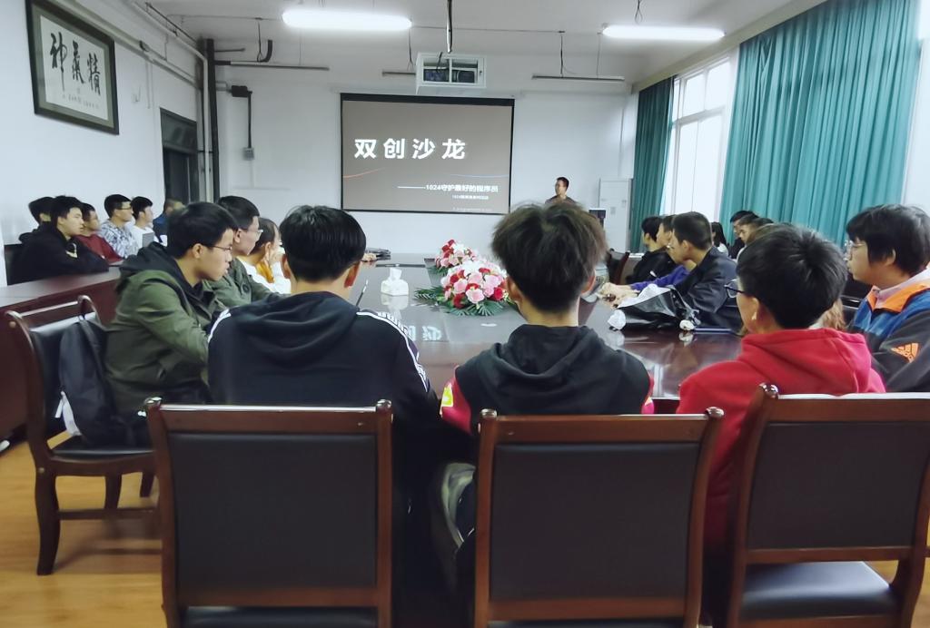 在国家大力推行“大众创业,万众创新”的时代背景下,为培养信工学子的创新思维,公司特面向团学组织主要员工干部开展“守护最好的程序员”双创沙龙,组织全体大一新生召开“互联网+”、“创青春”、“挑战杯”三大创新创业赛事宣讲会,通过与在双创、科研中取得优异成绩的朋辈进行经验交流和分享,助力信工学子在双创和科研方面取得更好成绩。