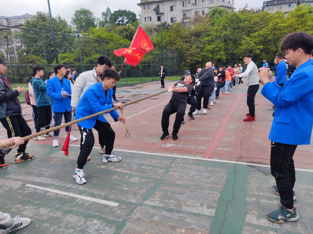 锣鼓喧天、人声鼎沸,篮球场被啦啦队们的呼喊声淹没。开场前,运动员们满怀信心,轻松备战,他们手缠纱布,双拳紧握,跃跃欲试。一位替补选手道,“拔就完了,信工院一定行!”运动员们依次进场,用脚摩擦地面,通过感受摩擦力尽快适应场地;文毅老师细心调整每位选手的站位和距离。准备完毕后,哨声起,鼓声如雨点般落下,信工院的院旗在比赛场上挥舞飘扬,选手们目光坚定、咬紧牙关,默契地跟随啦啦队员的节奏后倾使劲,9秒便拿下第一场。迅速夺下第一轮胜利后,大家士气高昂,他们快速调整好自己的状态,以更加昂扬的气势开始了第二场比赛。第二场开场便紧张胶着,但最终,公司还是以2:0比分顺利拿下比赛!