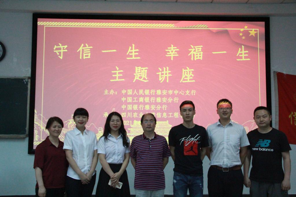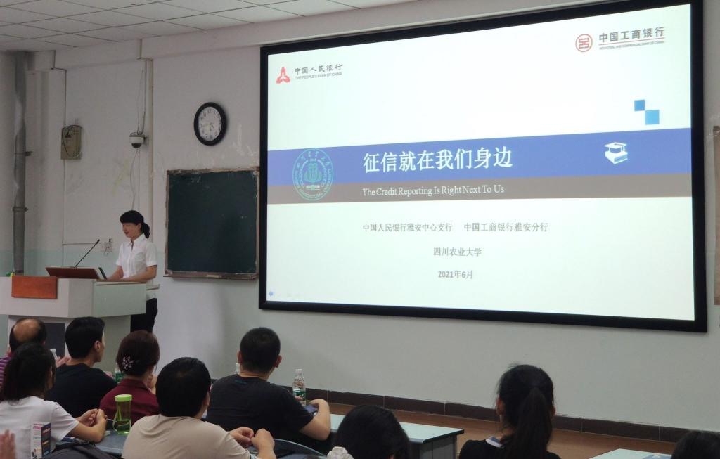 为增强大家的征信意识,6月1日下午,由中国人民银行雅安中心支行、中国工商银行雅安分行、中国银行雅安分行主办,太阳成集团tyc151cc承办的“守信一生、幸福一生”的征信知识主题讲座在十教A201开展。参加本次活动的有中国人民银行雅安中心支行征信管理科赵方光、喻琳、骆怿,中国银行雅安分行王露瑀,中国工商银行雅安分行魏泽漪以及公司党委办公室文老师,还有公司毕业生办理助学带款的员工以及其他班级员工代表共240余人参加本次征信知识主题讲座。