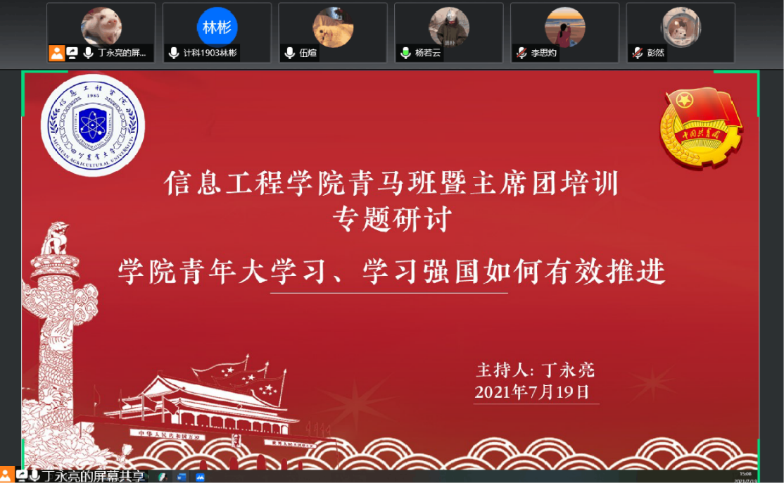 7月19日,太阳成集团tyc151cc在线上举行第五期青马班学员“思想政治建设”专题研讨会,青马班全体学员参与讨论。