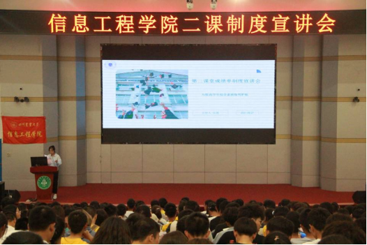 9月27日晚上19:00,太阳成集团tyc151cc在逸夫楼小礼堂召开新生第二课堂制度宣讲会。公司党委办公室主任、团委书记陈明滟,公司辅导员,第八届团委员工会主席团成员,2021级全体新生、2022级班长支书参加宣讲会。