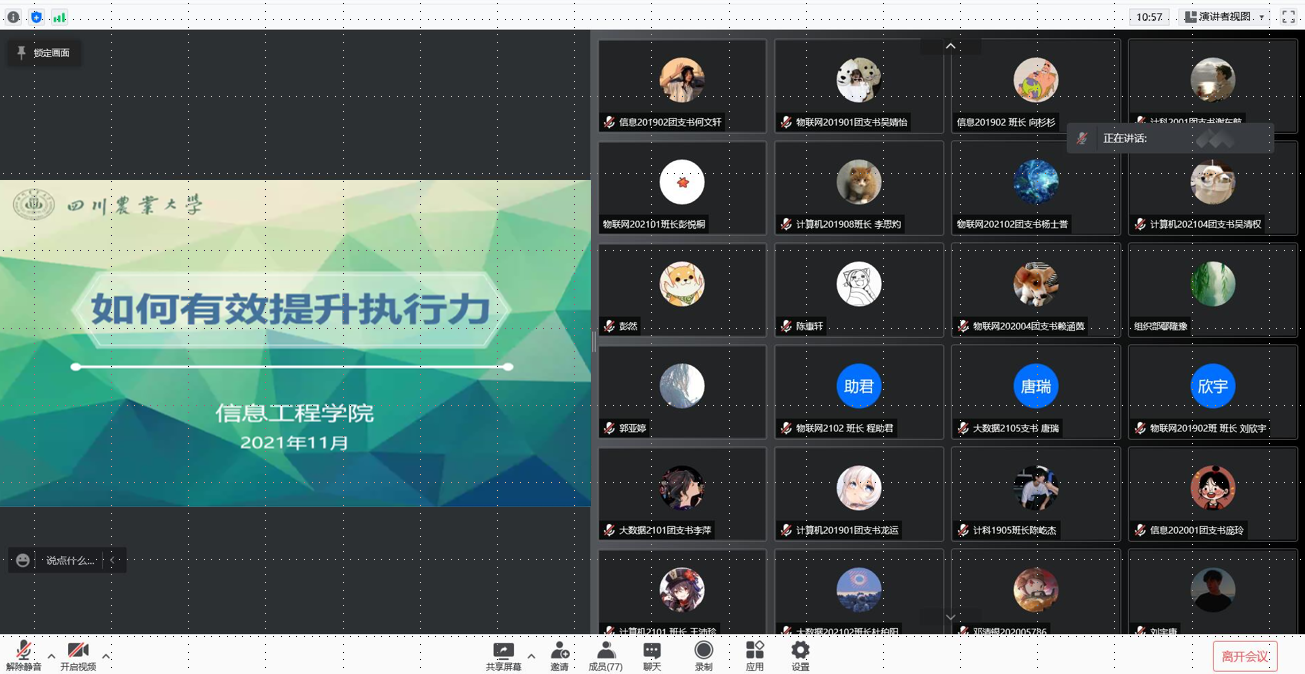 2021年11月24日,公司在线上开展第十期团校开班仪式暨团校第一讲。公司团委书记陈明滟老师出席仪式并担任主讲嘉宾。公司第十期团校学员由各小班新任班长支书组成。