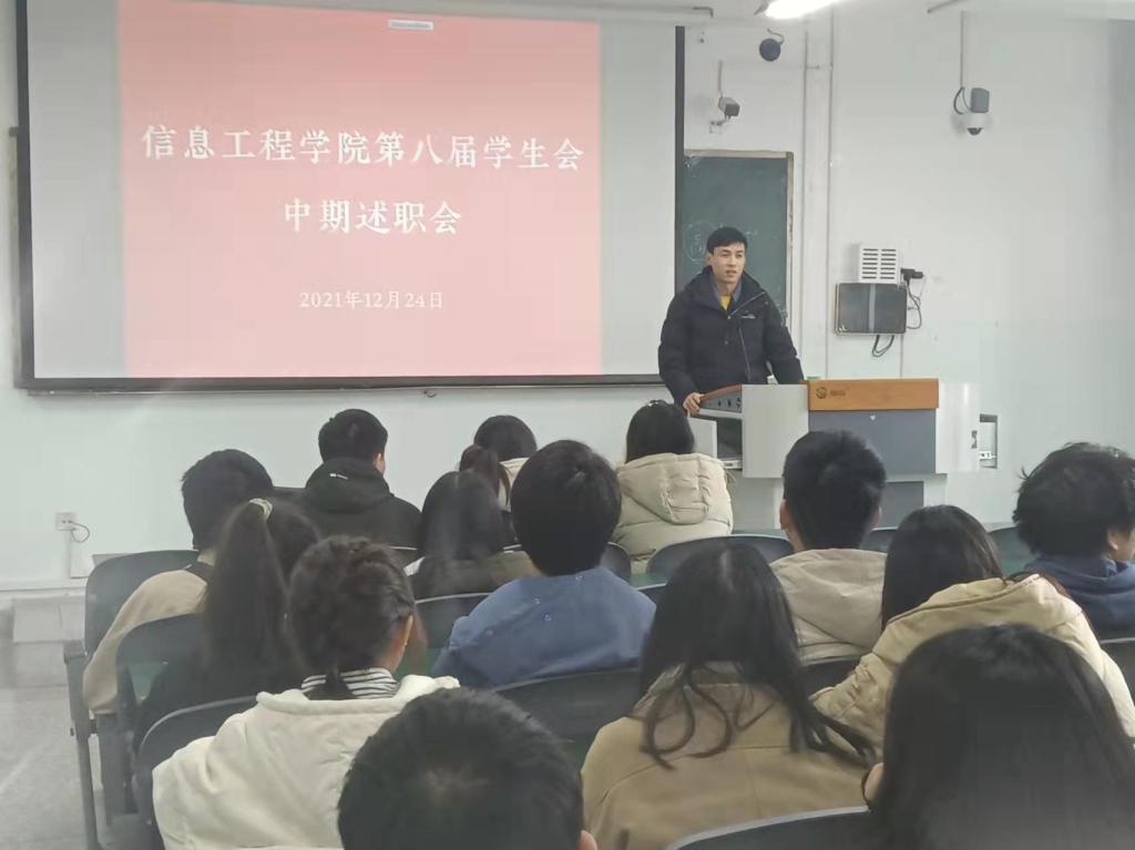 12月24日中午,信工院员工会于1教106召开第八届员工会中期述职会。党委办公室辅导员老师老师,员工会主席、员工会各部门全体员工干部等98人参会。会议由林彬主持。