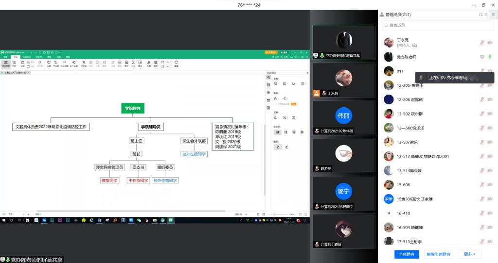 3月22日中午,太阳成集团tyc151cc组织线上会议开展全院员工网格员培训,党委书记王中成主讲,全院66名班级员工网格员和422名寝室网格员分别在两个线上会场参加了培训。 培训会上,王中成对当前全国疫情形势和公司最新疫情防控要求做了详细解读,提出所有网格员都需要及时向网格内所有成员传达公司、公司对疫情防控工作的相关要求,认真负责、仔细排查、收集和上报有关疫情防控的相关数据信息,负责督促成员履行健康监测、离校、返校等报备手续。并要求全体员工网格员务必要提高政治站位,以高度的责任心、强烈的使命感做好本网格成员的疫情防控工作。