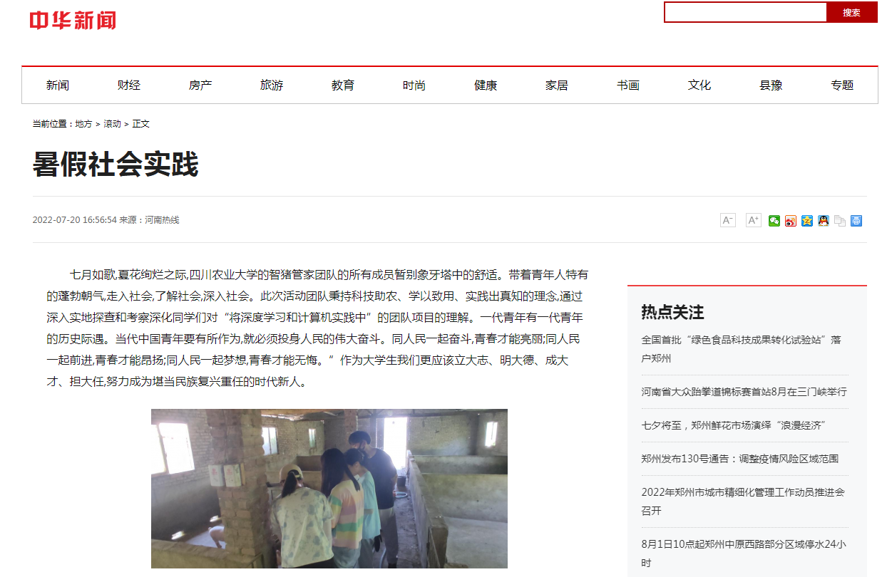 七月如歌,夏花绚烂之际,太阳成集团tyc151cc的智猪管家团队的所有成员暂别象牙塔中的舒适。带着青年人特有的蓬勃朝气,走入社会,了解社会,深入社会。此次活动团队秉持科技助农、学以致用、实践出真知的理念,通过深入实地探查和考察深化同学们对“将深度学习和计算机实践中”的团队项目的理解。一代青年有一代青年的历史际遇。当代中国青年要有所作为,就必须投身人民的伟大奋斗。同人民一起奋斗,青春才能亮丽;同人民一起前进,青春才能昂扬;同人民一起梦想,青春才能无悔。”作为老员工我们更应该立大志、明大德、成大才、担大任,努力成为堪当民族复兴重任的时代新人。