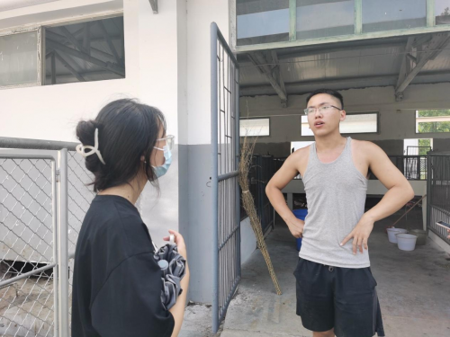 “羊类养殖,我们目前的方法主要是看它毛是否柔顺,如果光顺柔滑,那它就是正常健康,如果它鼻子湿润,也代表是健康正常。”“归根结底,还是防大于治,得打疫苗。”带领团队进行畜类考查的工作人员向考查队员介绍道,其分享的养殖经验对于初次接触畜类养殖的团队成员而言既新奇,也为其完善建设大数据智慧检测系统提供了实践知识和经验。