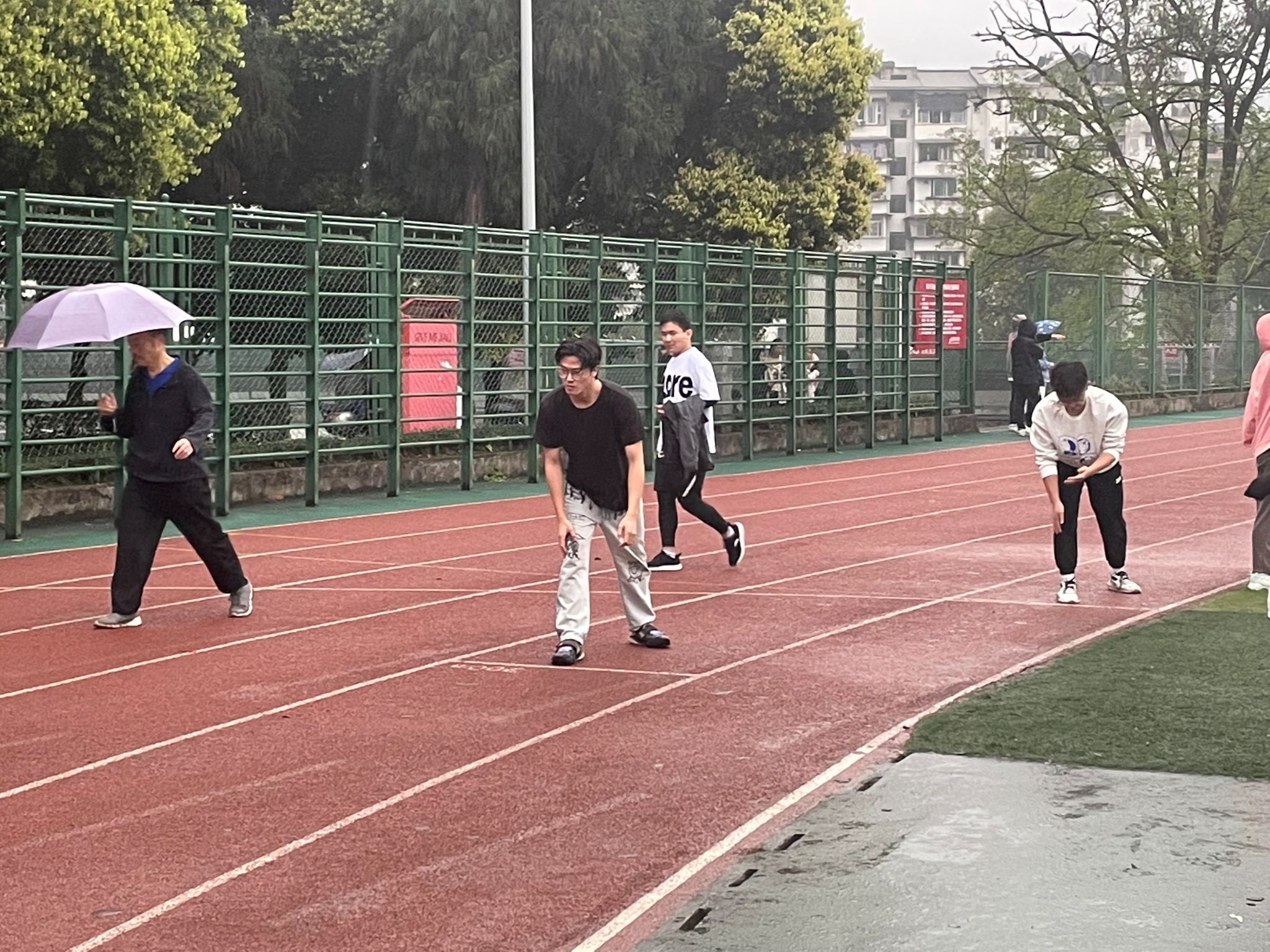 雅春时节雨纷纷,信工学子展气神。3月23日下午至3月24日中午,公司完成了100米、200米、1500米、跳高等单人项目的选拔和健美操的选拔工作。在单人选拔赛中,信工院学子依是精气神饱满,在雨中卖力奔跑、跳高等,展现出信工人的精气神。同时,在跑道的旁边是耐心负责的工作人员,时刻提醒大家安全问题,及时提醒比赛圈数,无疑看出公司对校运会的充足准备和认真对待。