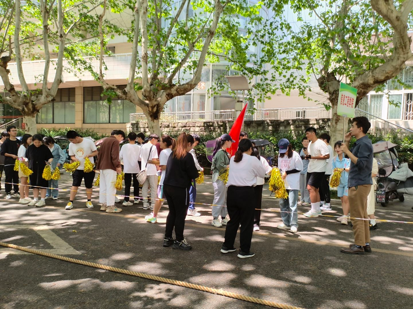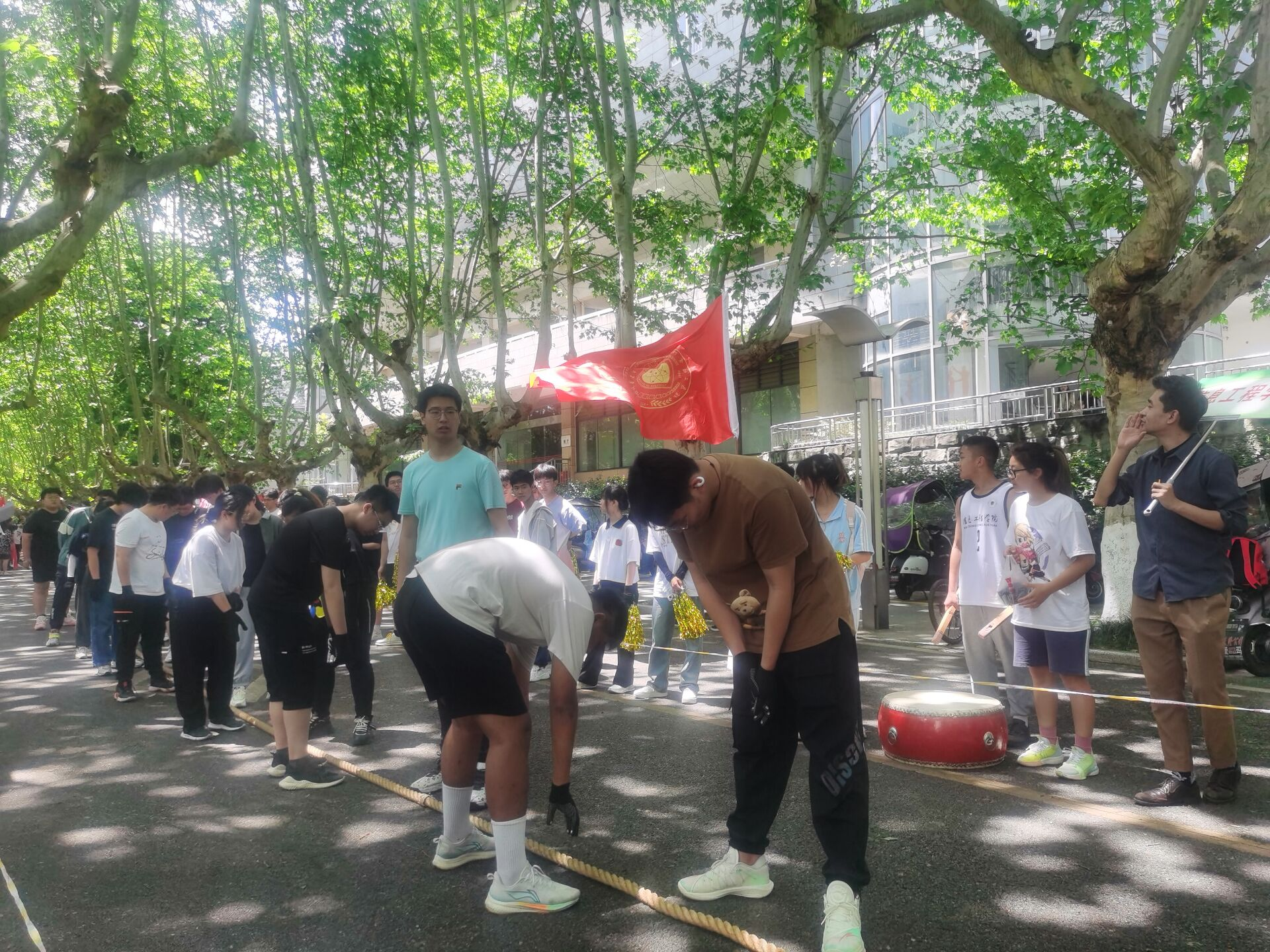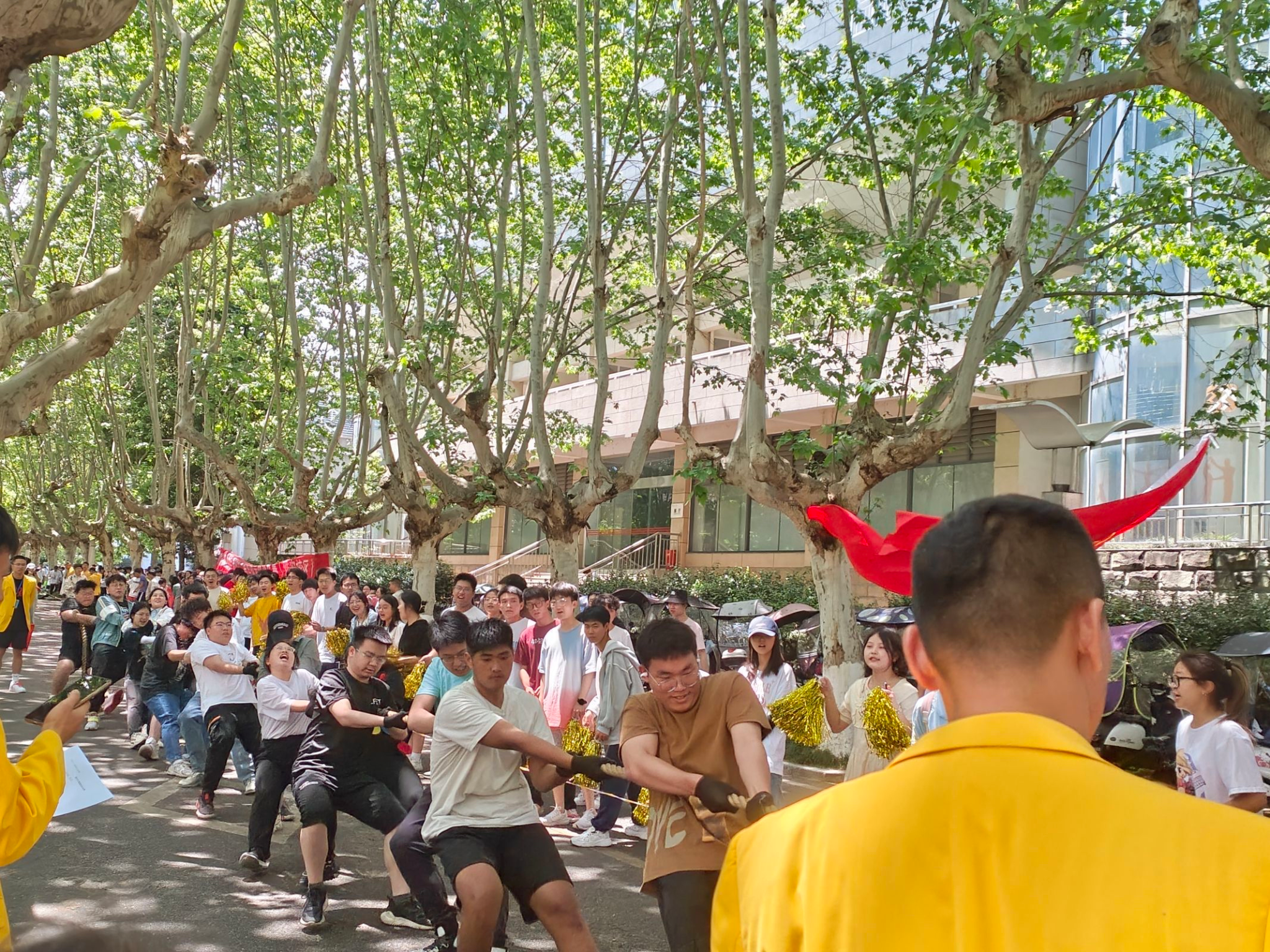4月18日中午13:00,公司与人文公司于老区梧桐大道进行了拔河比赛,党委办公室主任邓秋红老师、党委办公室阿迪力老师亲自来比赛现场为运动员们指导助威。在欢呼声中,公司以2:0的成绩凯旋而归,获得胜利。