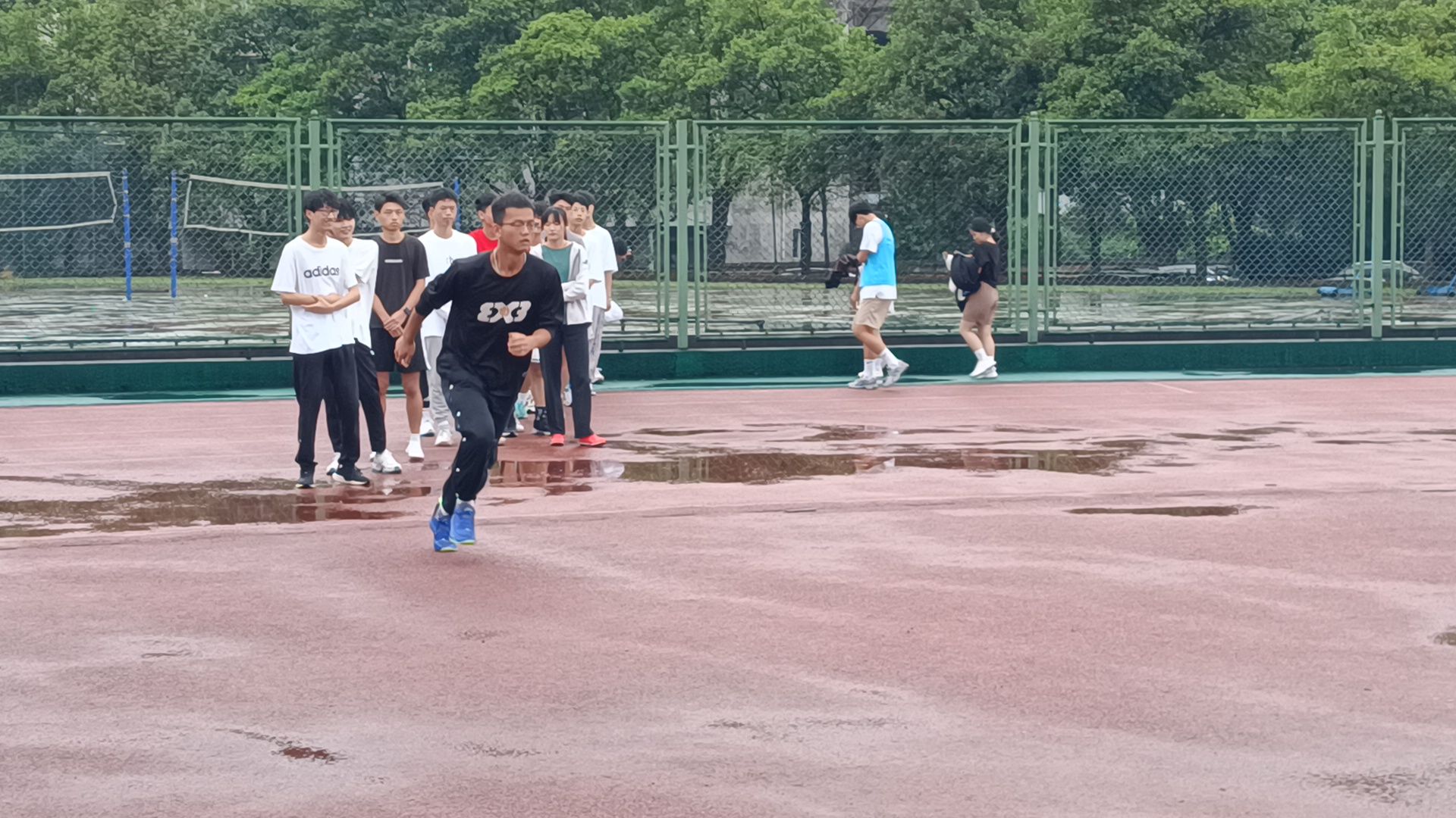 健美操比赛之后,校运会的主要战场转换到三区操场,上午开展了100米(男/女)预赛、800米决赛、男子跳远、女子铅球、男子跳高比赛。在每个比赛的现场,都可以随处看到信工健儿的身影。小雨绵绵,但是信工儿的勇敢拼搏精神依旧得到了充分展现。同时,在操场的每个比赛现场,一定会看到“蓝色马甲”的保驾护航,保证每一个运动健儿的安全。在上午的跳远比赛中,袁亮斩获公司首金,同时,廖若成与夏梓涵均以预赛小组第一进入100米最后的角逐。