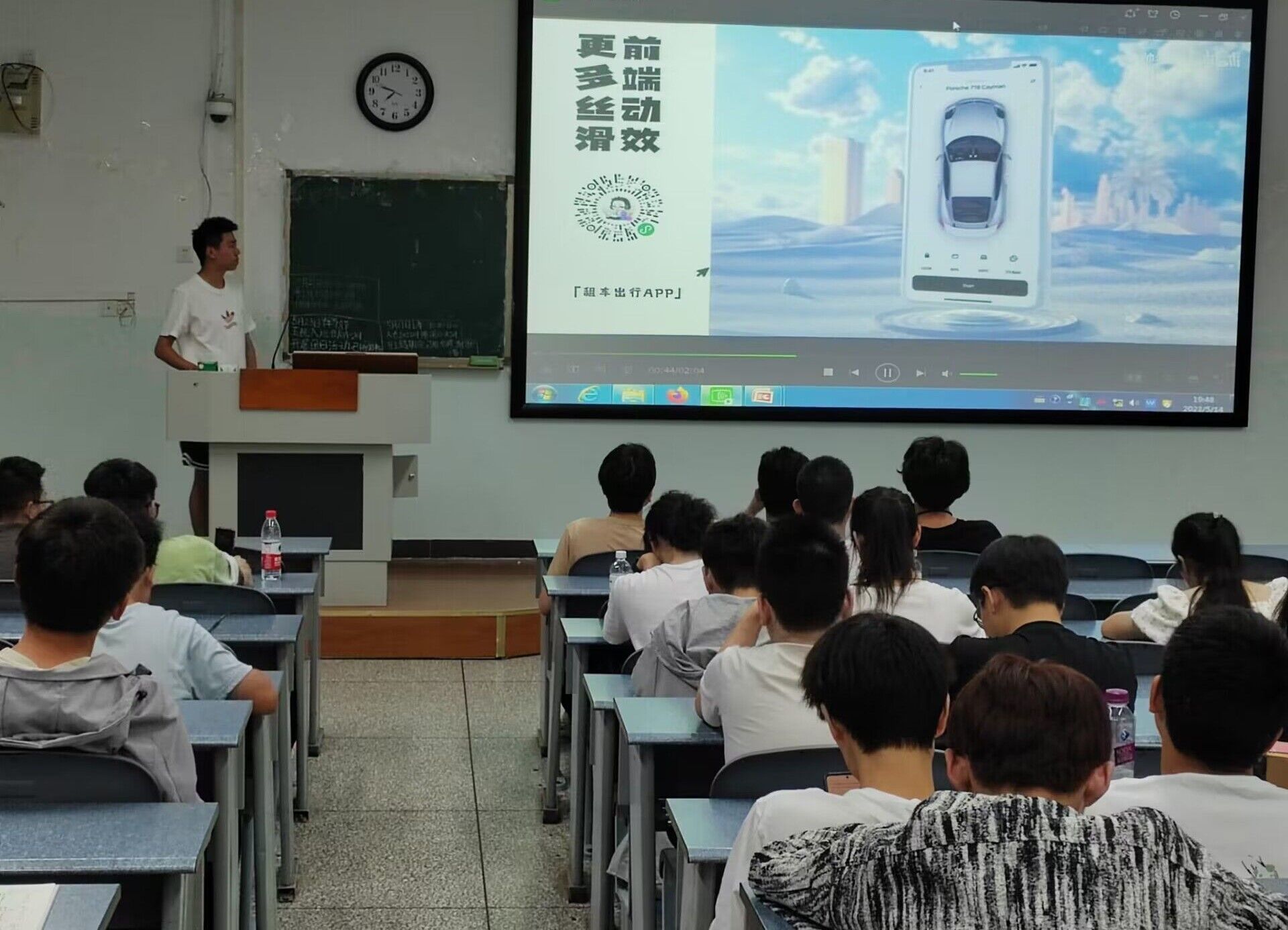 陈诺从程序员需知、前端方向、后端方向和工作室介绍等四个方面进行本次分享。他通过丰富易懂的图片和风趣幽默的讲解让同学们对“程序员”有了系统的认识,他通过采访视频让同学们了解到“外行”对于“程序员”的理解。在谈到前端方向时,陈诺指出,VR和AR等新技术的崛起将在前端领域带来更多的可能性;他呼吁同学们不断学习,走在科技的前沿。对于后端方向,他说道:“后端开发需要基础的前端技术,掌握一些后端框架,才能进一步发展”。谈到哪个方向就业更容易时,他提出,只要知识技能够“硬”,不论是哪一个方向的就业都比较容易。最后,他还向大家详细介绍了IOT工作室,并向在场同学们陈列了加入工作室的优势,鼓励同学们积极加入工作室提升自我。