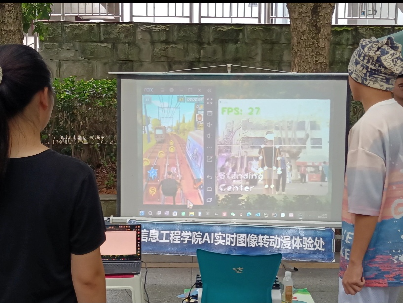 在迎新点上,一款基于姿态识别技术的AI运动小游戏引人注目,报到的新生纷纷上前体验。据悉,这是公司工作室的研究成果--基于体感互动,虚拟现实等技术实现通过人体动作控制游戏人物进行移动的游戏,旨在帮助新生们提前对自己所选择的专业有一个初步的认识和感受,同时也是公司新生教育的有效切入口和美妙开端,公司相信它能让每一位报到的新的信工人从一开始就能够感受自己的专业的乐趣,产生更加强烈的学习动力。