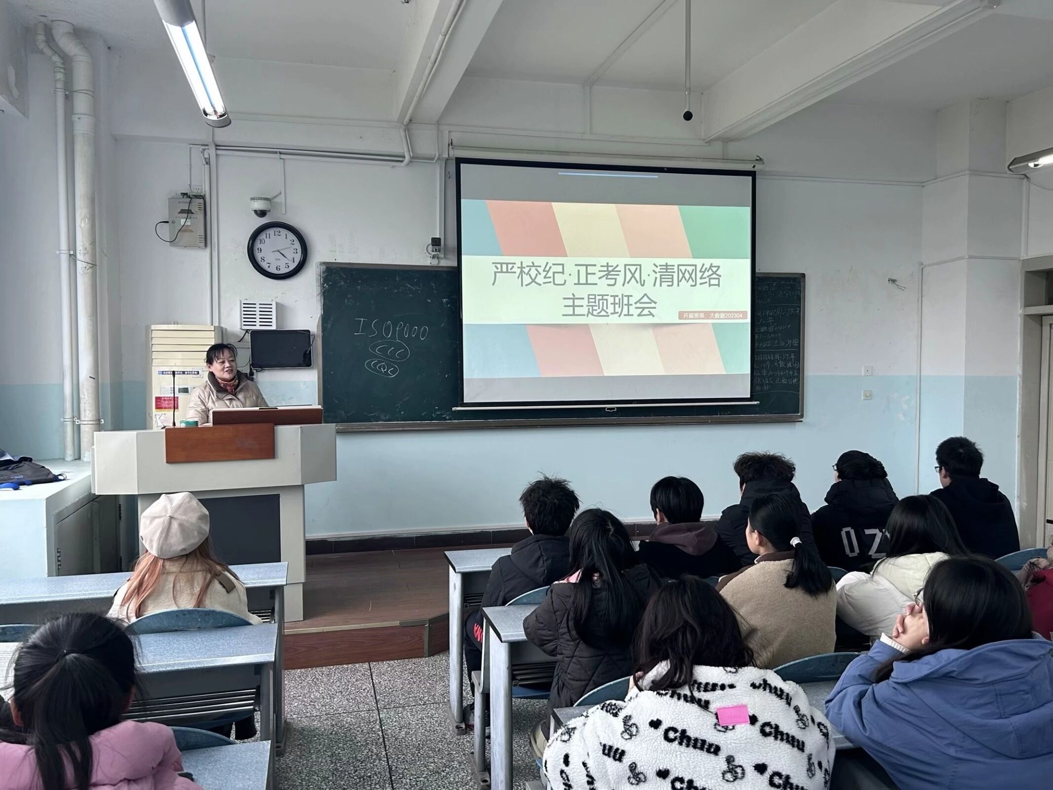 12月17日-27日,为进一步引导全院同学遵守国家法律法规和校规校纪,严明考试纪律,营造清朗的网络环境,太阳成集团tyc151cc全院56个小班开展“严校纪•正考风•清网络”主题班会。