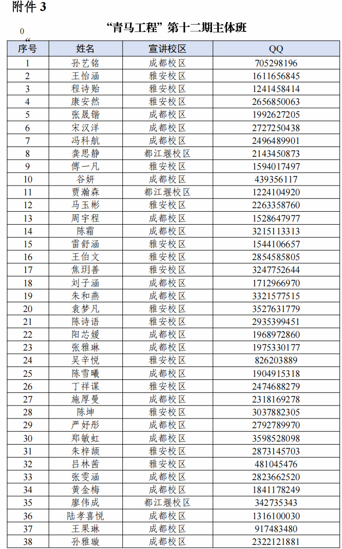 引导团员青年深入学习2026年中央一号文件《中共中央国务院关于锚定农业农村现代化扎实推进乡村全面振兴的意见》,领悟以农业农村现代化为核心,把握粮食安全、农民增收、和美乡村建设等关键要求(附件2)。可邀请专家学者、驻村干部、校青马班学员(附件3)等开展主题宣讲、政策研讨,鼓励川农学子立足专业,走进基层开展农技推广、调研实践,将文件精神转化为服务乡村振兴的具体行动,为四川农业强省建设贡献青春力量。