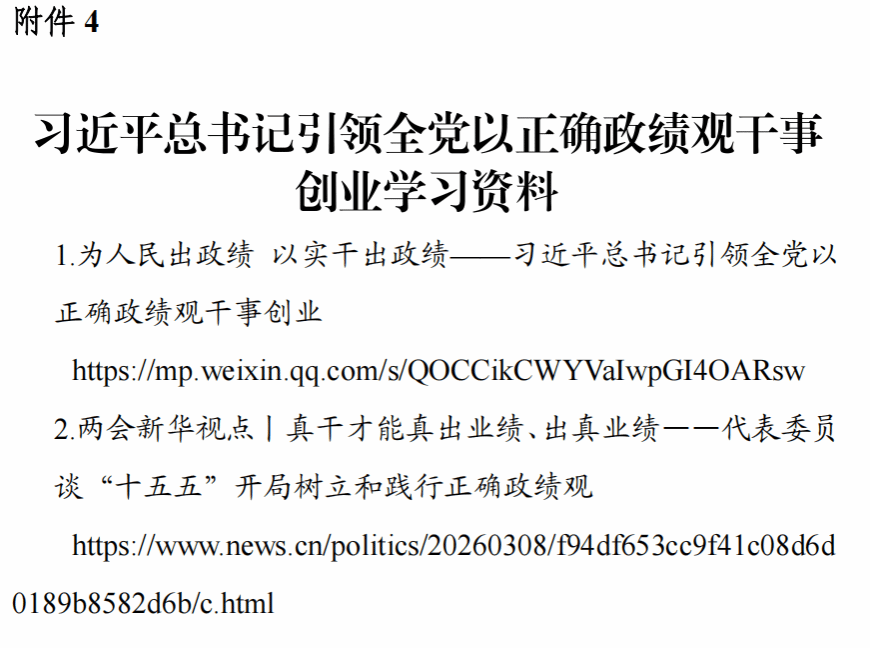 引导团员青年深入学习贯彻习近平总书记关于树立和践行正确政绩观的重要论述,准确把握其核心内涵(附件4)可主动邀请党员干部、党校专家、优秀基层工作者开展专题宣讲和解读辅导,通过专题研讨、案例剖析、心得分享等形式开展深度交流,推动团员青年把正确政绩观的要求内化于心、外化于行,以实实在在的行动和成效诠释青年担当。