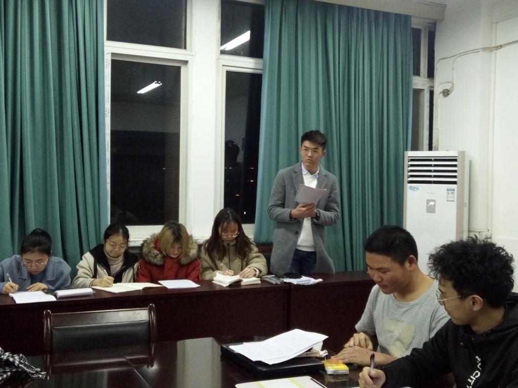 会议分为学习新时代爱国主义教育和读书学习分享两部分。黄敬程带领全体成员朗读学习《新时代爱国主义教育实施纲领》。通过学习,各成员对全文的总体要求、基本内容有了一定的了解。爱国主义是中华民族的民族心、民族魂,是中华民族最重要的精神财富,是中国人民和中华民族维护民族独立和民族尊严的强大精神动力。本次学习上台分享心得的同学有:肖敬、雷欣、黄李明、唐棋、李俊良、范芸菲、吴瑶、陈时敏、丁家雄、王鸿杰。其中,雷欣谈道,“青年人要将自己的小梦想和国家的中国梦相结合,为实现中华民族伟大复兴作出一点自己的小贡献”。陈时敏认为,“新时代,爱国不仅仅停于口头上,更是在行动实践当中体现”。