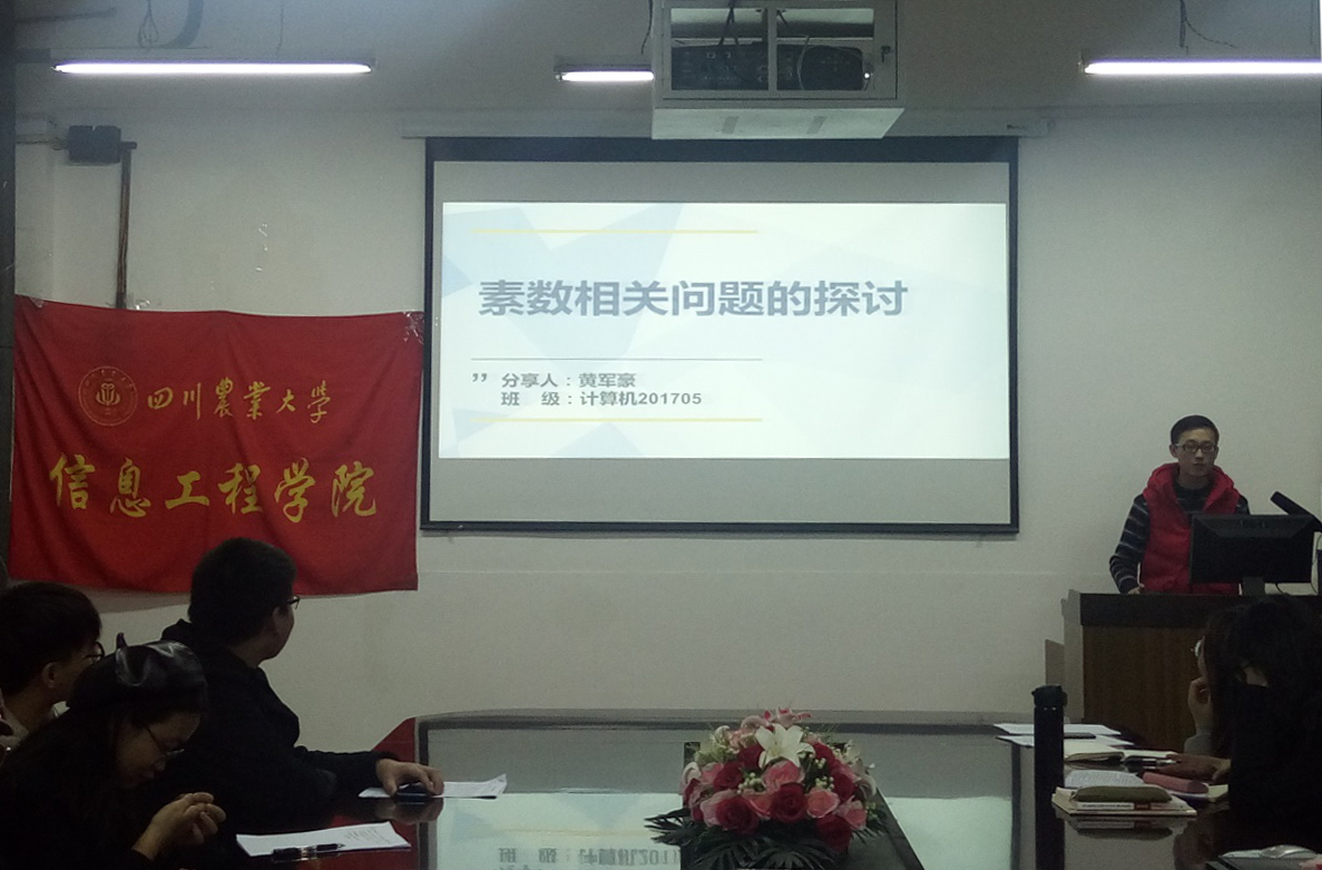 在读书学习分享交流会环节,黄军豪、张锡鑫、徐雪环、代凤莹、丁家雄五位同学依次上台分享自己在读书学习过程中的收获和感想。黄军豪介绍了素数相关问题的探讨,“什么是素数”、“怎么判别素数”、“埃拉托斯特尼筛法求素数”;张锡鑫对香港问题进行了分析,强调“四个自信”的重要性;徐雪环介绍了英语等级考试的时间、试卷组成部分、物品清单等;代凤莹分享了自己的学习经验,号召同学们跳离舒适圈,向身边的优秀同学学习;丁家雄则介绍了《第五项修炼》这本书的学习收获和心得体会。【文:雷欣 黄敬程 审:邓秋红】