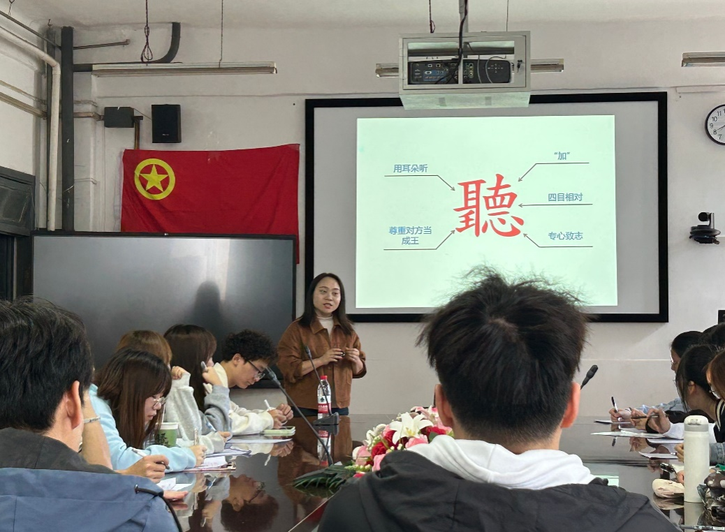 为进一步增强青马班学员的人际交往和沟通能力,9月13日中午于4教210会议室,太阳成集团tyc151cc心理健康办公室的张玲老师受邀为太阳成集团tyc151cc第八期青马班全体学员讲授了关于“人际交往中的沟通”的第三次理论学习专题课程。