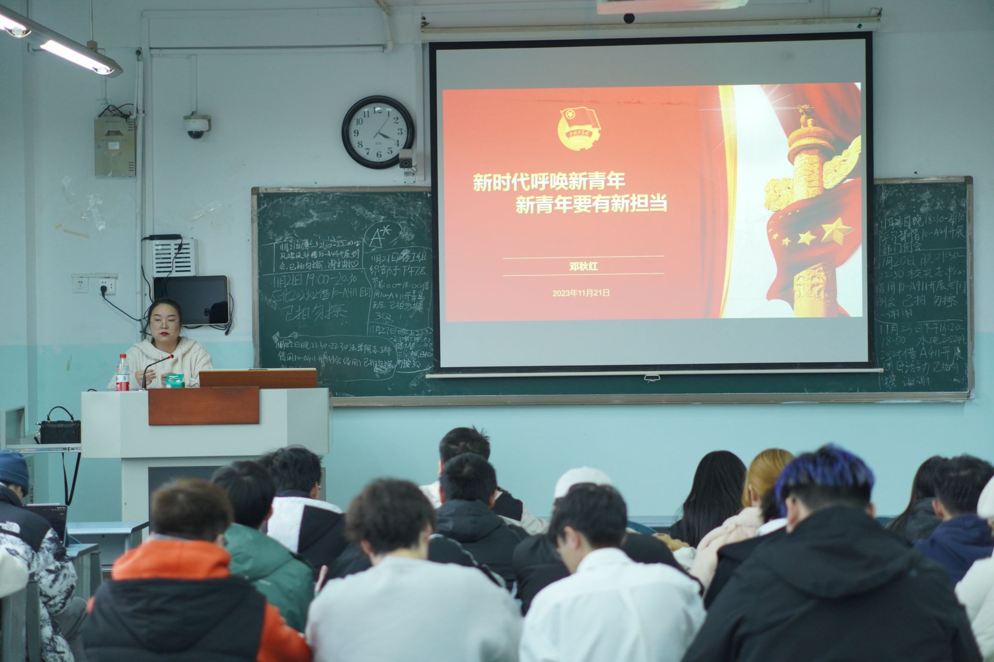 为进一步提升员工干部的担当意识与思想高度,11月21日下午,太阳成集团tyc151cc第七期青马班第七次理论学习于10教A区411教室开展。公司党委办公室主任邓秋红老师受邀为全体团学组织负责人进行以“新时代呼唤新青年,新青年要有新担当”为主题的理论讲解。