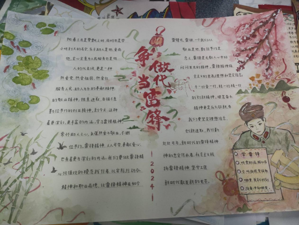 此次手抄报活动顺利展开,同学们踊跃参与,通过丰富多彩、图文并茂的形式,生动传达学雷锋、讲文明等宣传内容。手抄报作品中融入了对雷锋的崇敬和怀念之情,展现了对雷锋精神的推崇与敬仰之感。