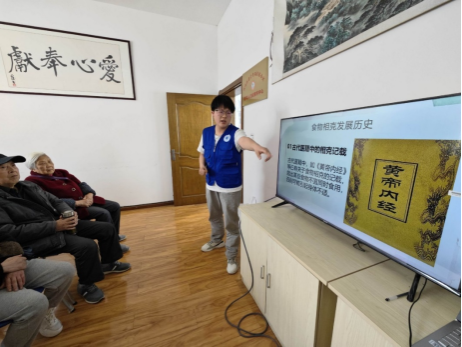 为确保活动顺利进行,亲民城乡综合服务中心的社工和老员工志愿者共同完成方案策划、场地布置和活动组织等工作。活动中,志愿者们带领老人们做头部按摩操,通过简单的按摩动作,帮助老人们缓解疲劳,促进血液循环。接着,志愿者带领老人们观看养生专家的视频讲座,内容涵盖了老年人常见的健康问题及预防方法,让老人们更深入的了解到健康养生的重要性。志愿者们还详细讲解了食物相克的相关知识,帮助老人们建立健康的饮食习惯。